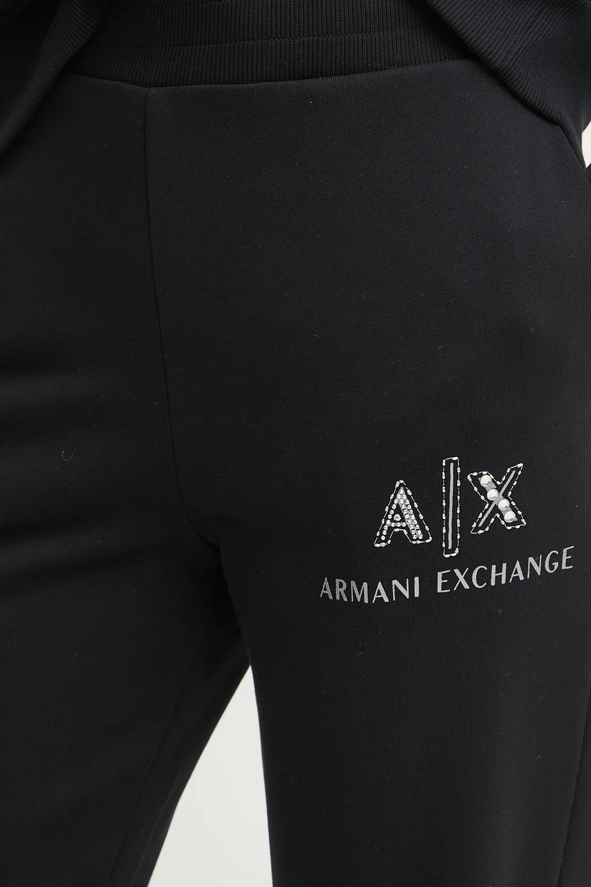 Armani Exchange spodnie dresowe bawełniane damskie kolor czarny z nadrukiem XW000162 AF11851