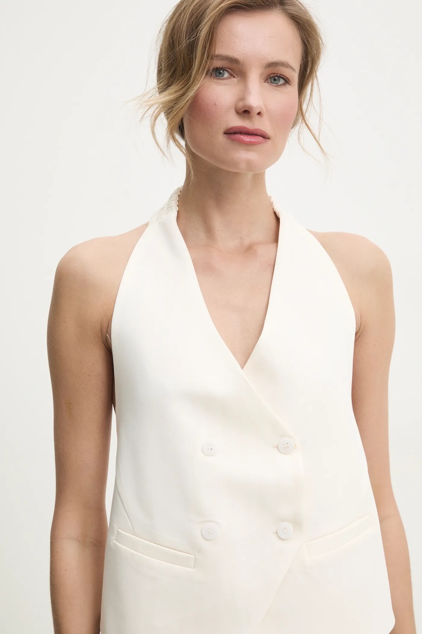 Answear.LAB kamizelka kolor beżowy dwurzędowa