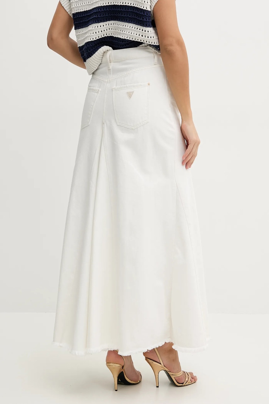 Guess spódnica bawełniana kolor beżowy midi rozkloszowana W5GD95 D5N92