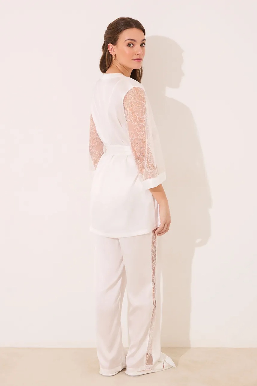 Czym wyróżnia się 3-częściowy komplet piżamowy women'secret?Regularne dopasowanie pozwala na pełną swobodę ruchów podczas snu i odpoczynku, nie krępując sylwetkiZestaw 3-częściowy to gotowe rozwiązanie na prezent lub praktyczny zakup dla każdej kobiety ceniącej wygodę i funkcjonalnośćDominujący materiał o gładkiej fakturze jest przyjemny w dotyku i łatwy w pielęgnacji, co przekłada się na trwałość i komfort codziennego użytkowaniaKoszulka na ramiączkach zapewnia lekkość i przewiewność, doskonale sprawdzając się zarówno latem, jak i pod szlafrokiem w chłodniejsze dniDługie spodnie chronią nogi przed chłodem i gwarantują wygodę przez całą nocSposób zapięcia na pasek oraz wiązanie ułatwia szybkie zakładanie i zdejmowanie, jednocześnie umożliwiając indywidualne dopasowanie szlafroka do sylwetkiRękaw 3/4 w szlafroku podnosi komfort termiczny, a jednocześnie nie ogranicza swobody ruchów podczas codziennych czynnościDekolt w serek optycznie wysmukla szyję i dodaje całości subtelnej elegancjiMiękka, jednolita podszewka gwarantuje przyjemne odczucia dla skóry nawet podczas wielogodzinnego noszeniaGładka struktura materiału z delikatną aplikacją nadaje kompletowi minimalistyczny charakter, który wpisuje się w aktualne trendy