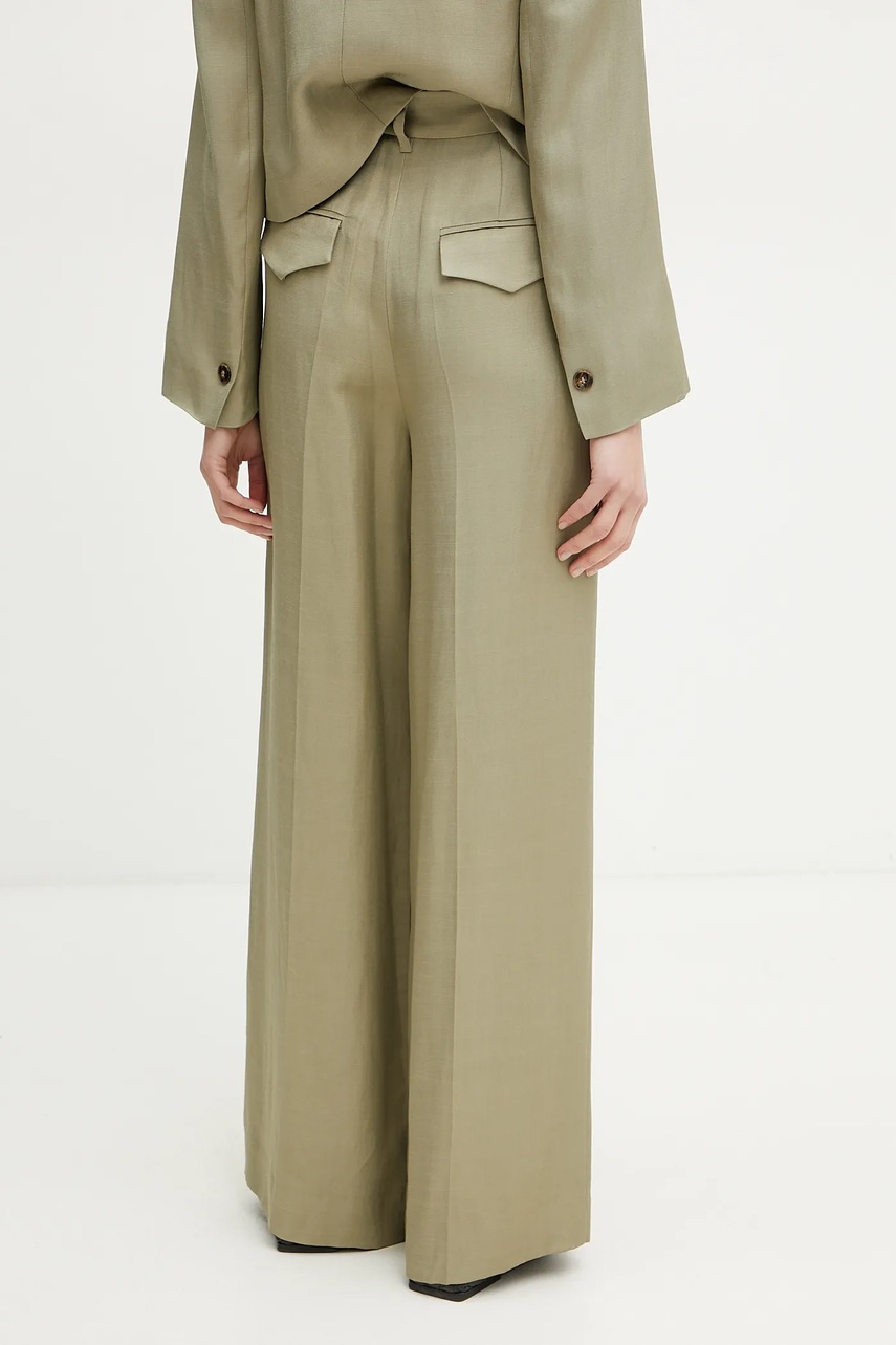 Marella spodnie z domieszką lnu Emme by Marella kolor zielony szerokie high waist 2515131041200