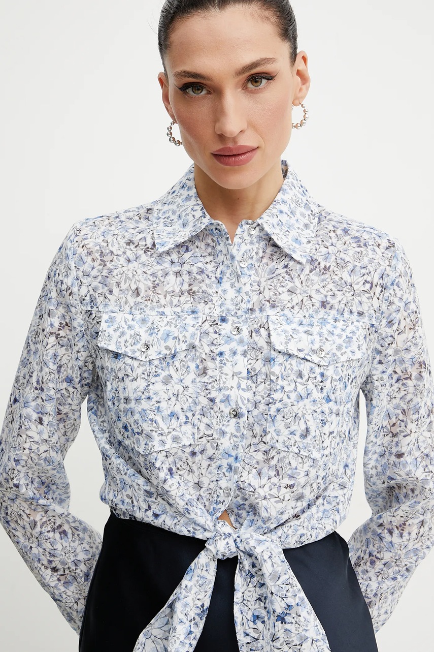 Guess koszula ADELAIDE damska kolor niebieski regular z kołnierzykiem klasycznym W5GH03 WH4K2