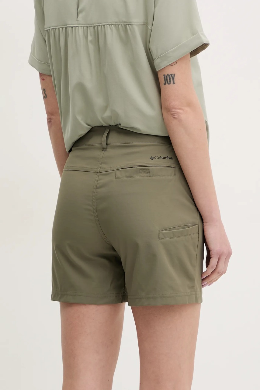 Columbia szorty outdoorowe Leslie Falls kolor zielony gładkie medium waist 2126061