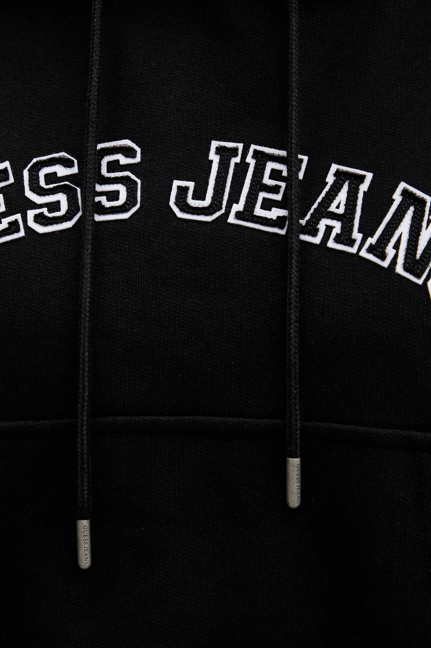 Guess Jeans bluza bawełniana damska kolor czarny z kapturem z aplikacją W5GQ22 K68I4
