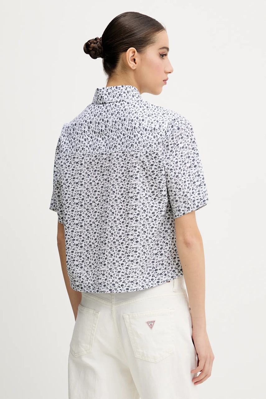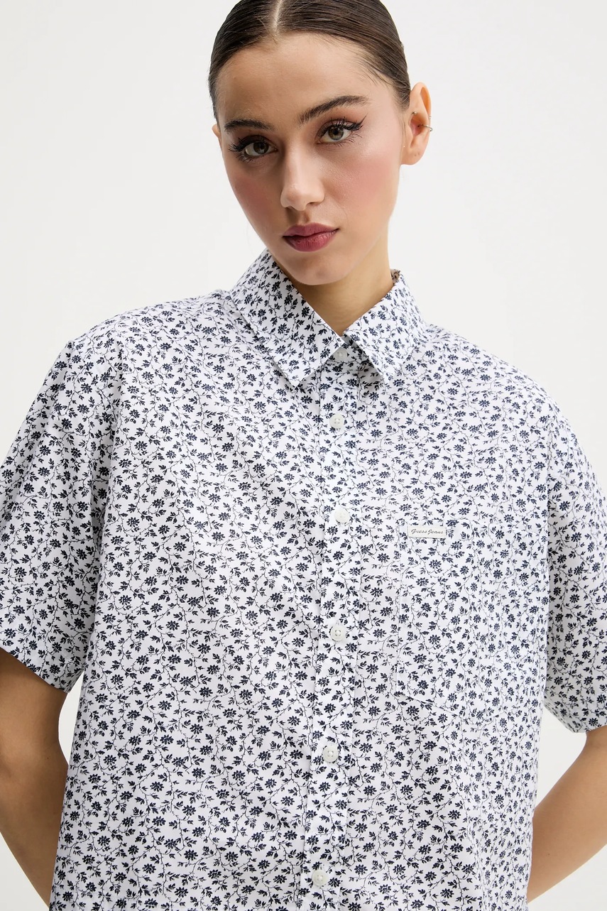 Guess Jeans koszula bawełniana damska kolor biały relaxed z kołnierzykiem klasycznym W5GH98 WH8R1