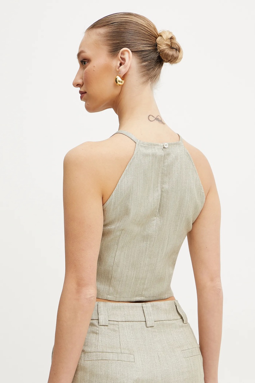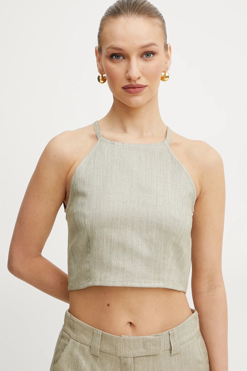 Marella top z domieszką lnu STILLA damska kolor beżowy gładka 2513161172200