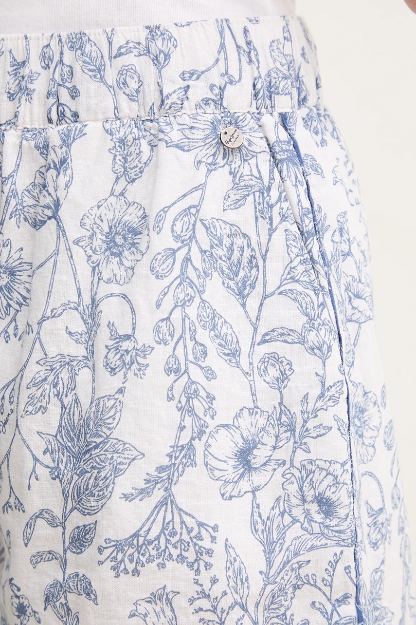 Pepe Jeans szorty lniane DARCY damskie kolor biały wzorzyste high waist PL801157