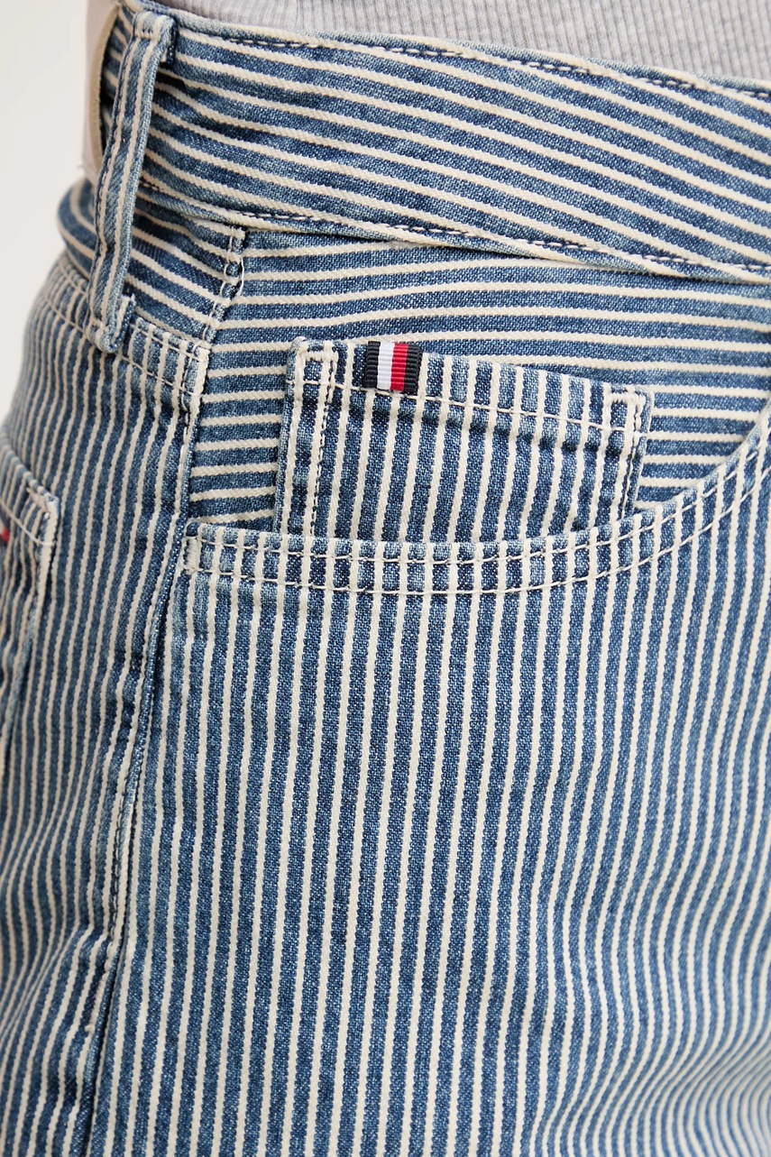 Tommy Hilfiger szorty bawełniane damskie kolor granatowy wzorzyste high waist WW0WW45925