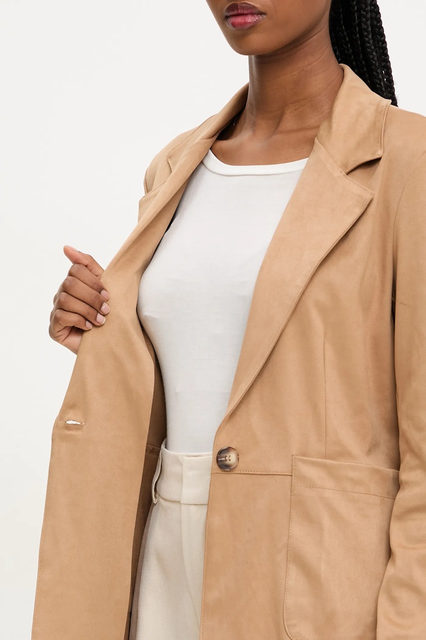 Answear.LAB marynarka kolor beżowy jednorzędowa gładka