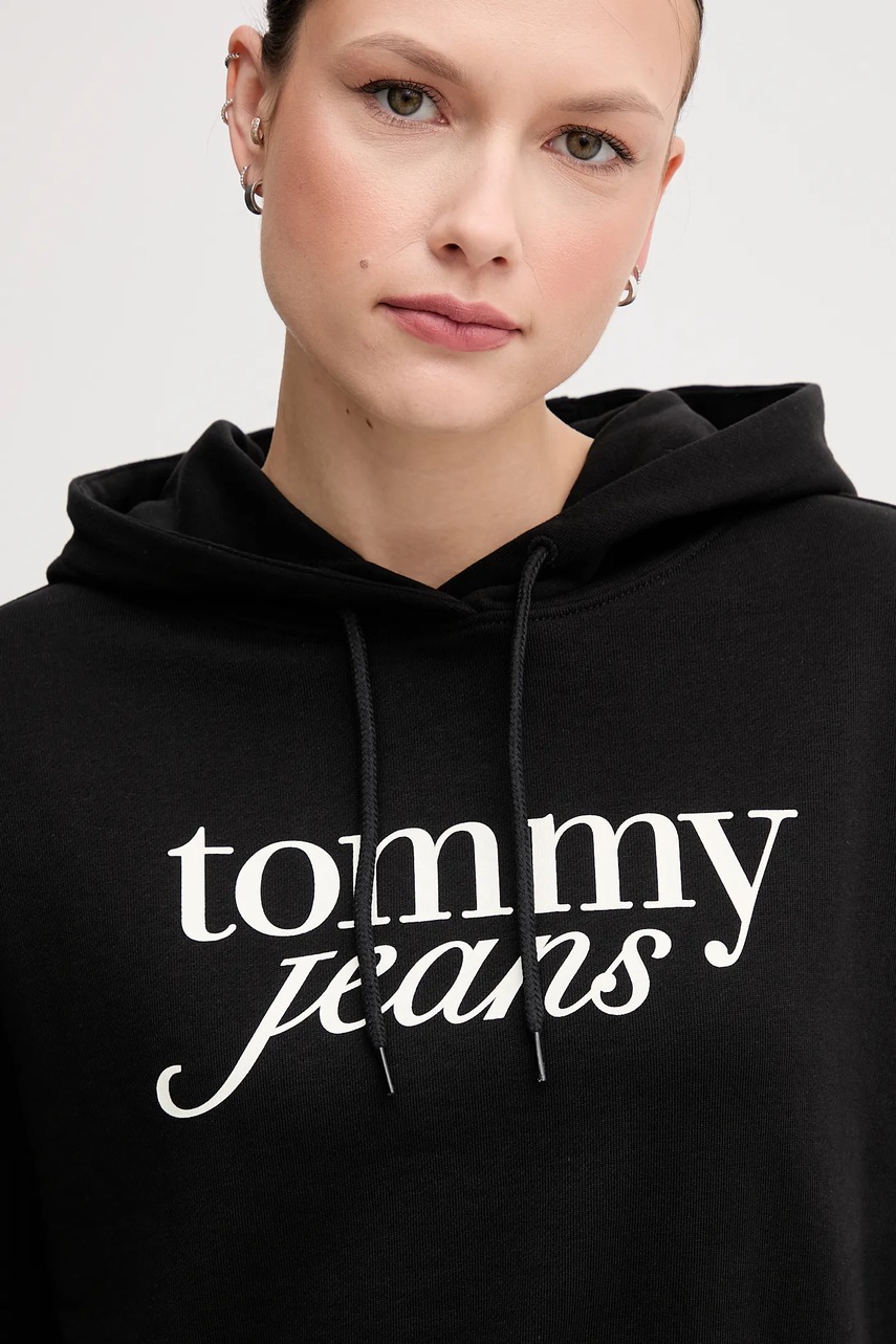 Tommy Jeans bluza bawełniana damska kolor czarny z kapturem z nadrukiem DW0DW20306