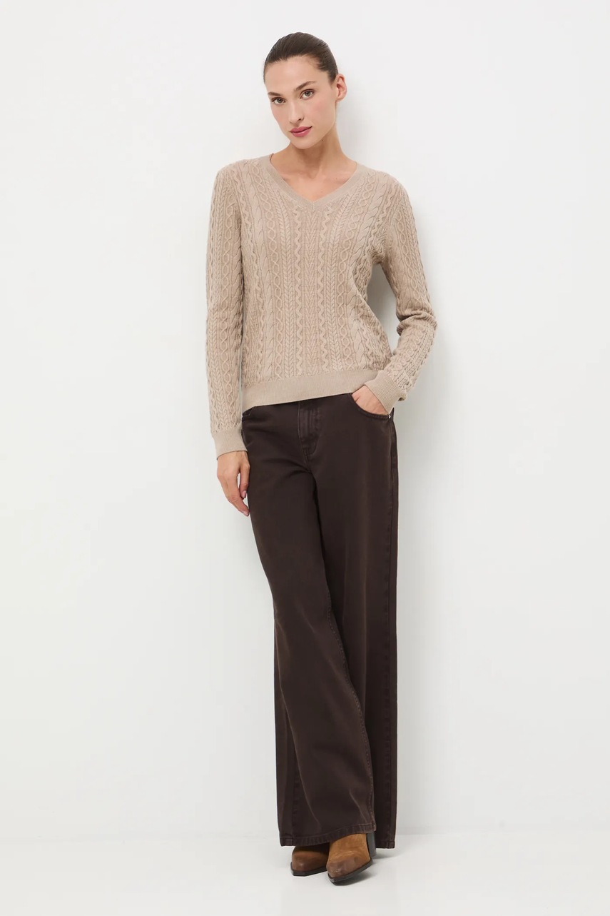 Medicine sweter z wełny merino damski kolor beżowy lekki