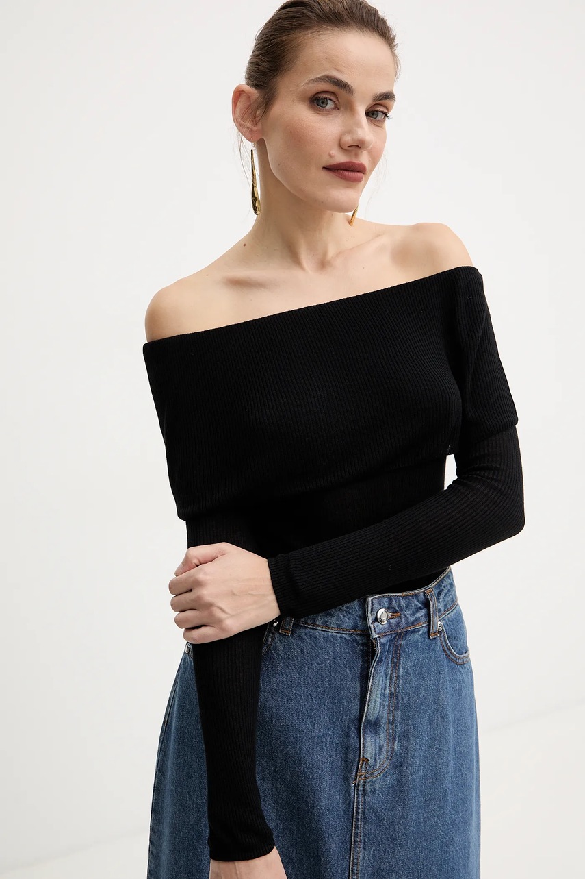 Guess longsleeve MELANIE kolor czarny dekolt hiszpański W5BR48 Z0612