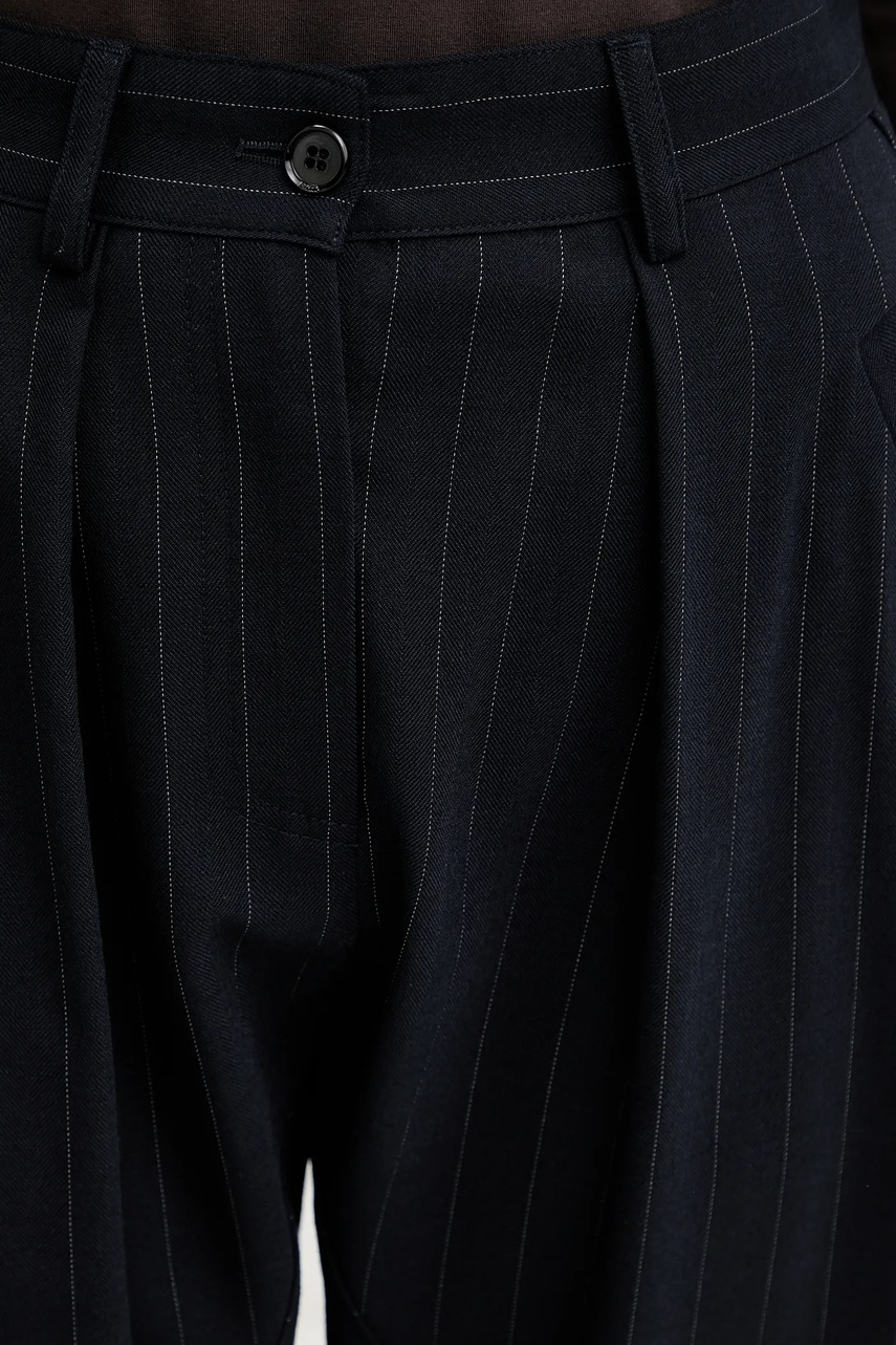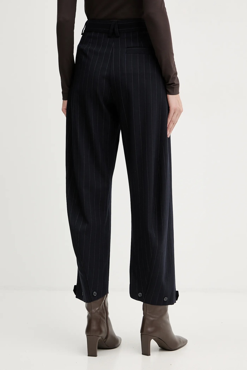 Pinko spodnie z dodatkiem wełny damskie kolor granatowy proste high waist 105707 A2QY