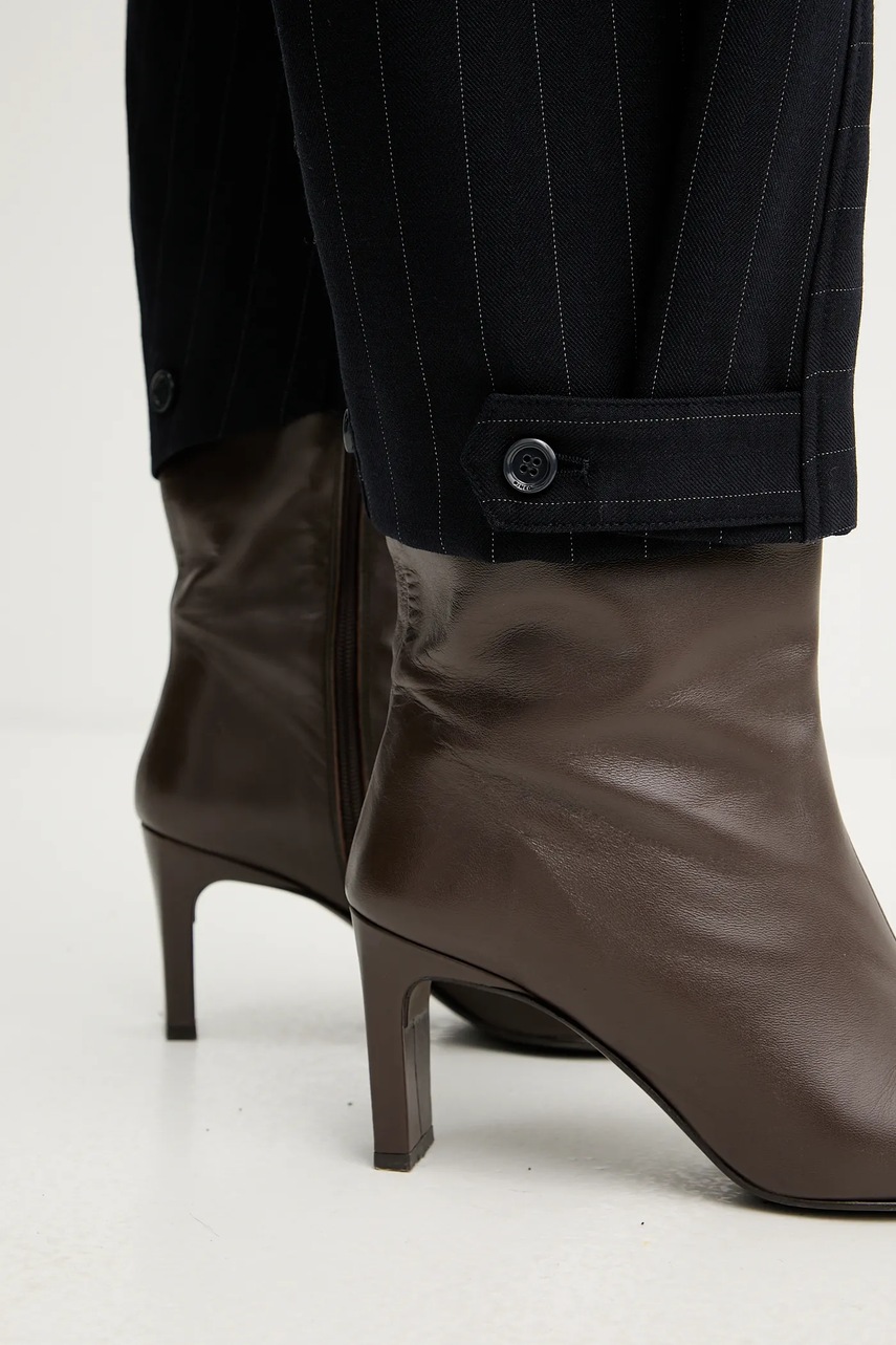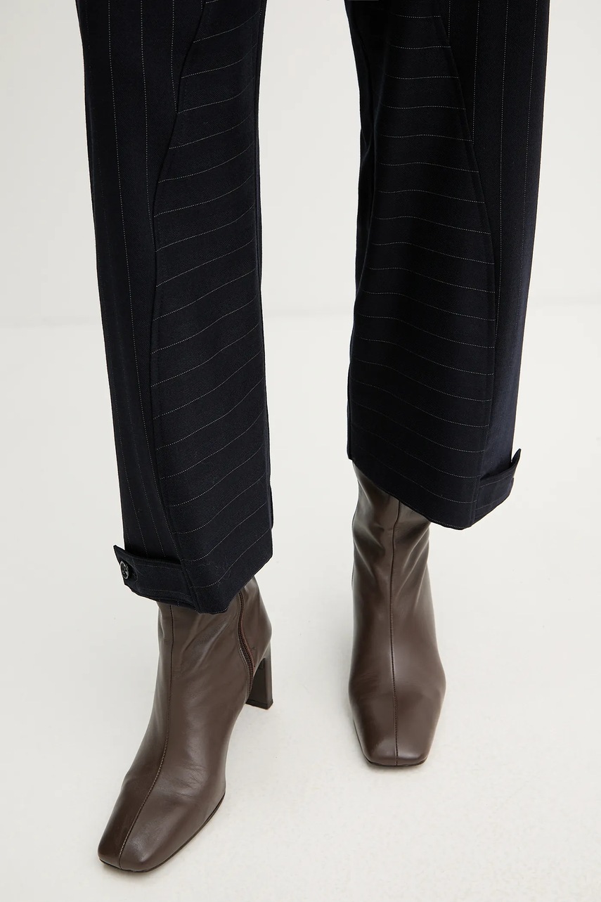 - Model z podwyższoną talią i zapięciem na guzik i suwak.
