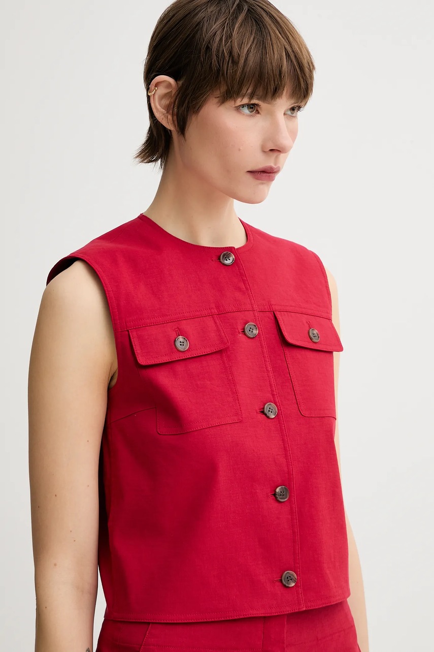 Theory kamizelka lniana kolor czerwony jednorzędowa P0303110