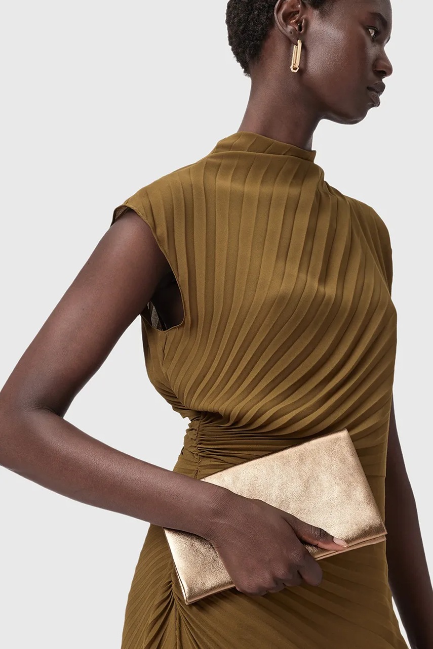 AllSaints portfel skórzany HARLUNA damski kolor złoty W208XD