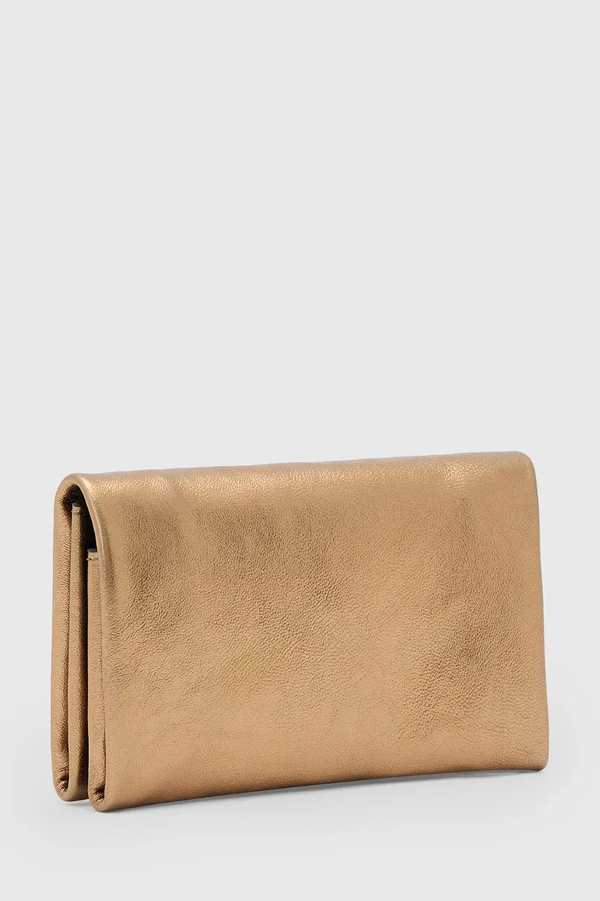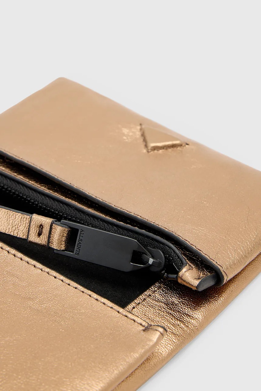 AllSaints portfel skórzany HARLUNA damski kolor złoty W205XD