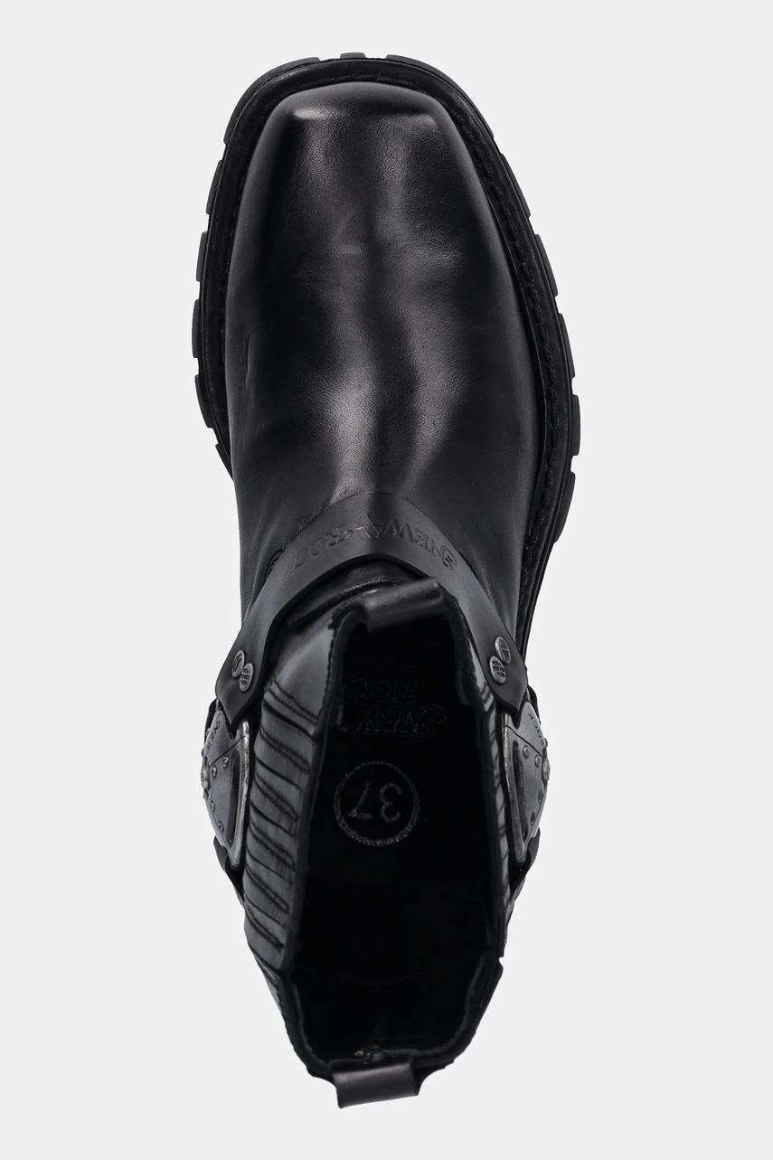 New Rock sztyblety skórzane Itali Negro, Motorcycle Negro damskie kolor czarny na płaskim obcasie M-7605-S1