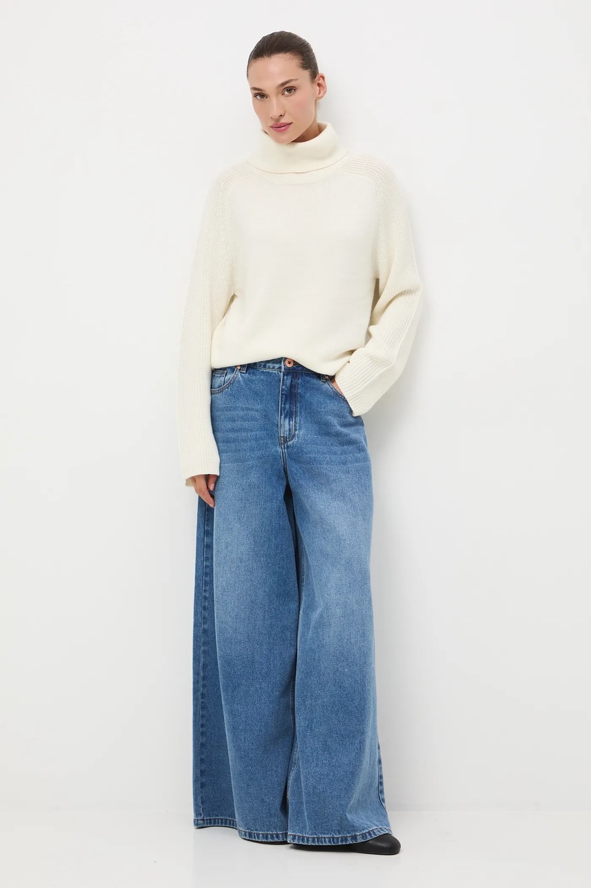 Medicine sweter z wełny merino kolor beżowy z golfem