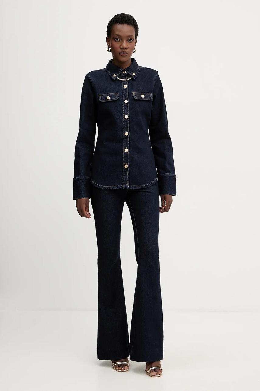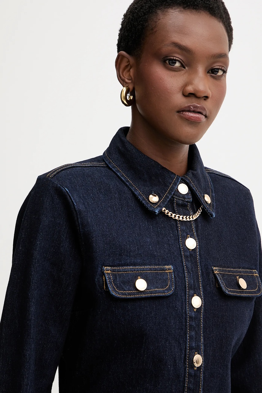 Retrofete koszula jeansowa Jorun damska kolor granatowy slim z kołnierzykiem klasycznym R-FW25-11811-11