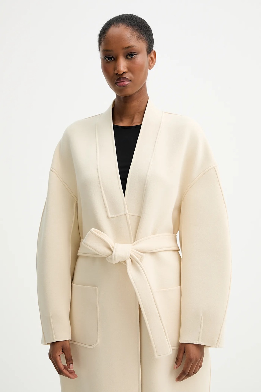 MM płaszcz DILETTA damski kolor beżowy przejściowy niezapinany 2526906017600