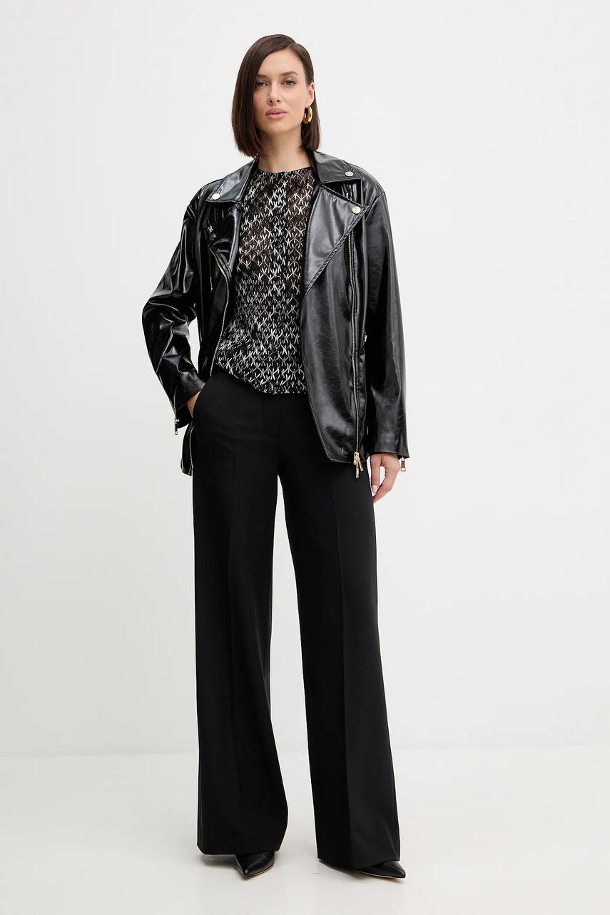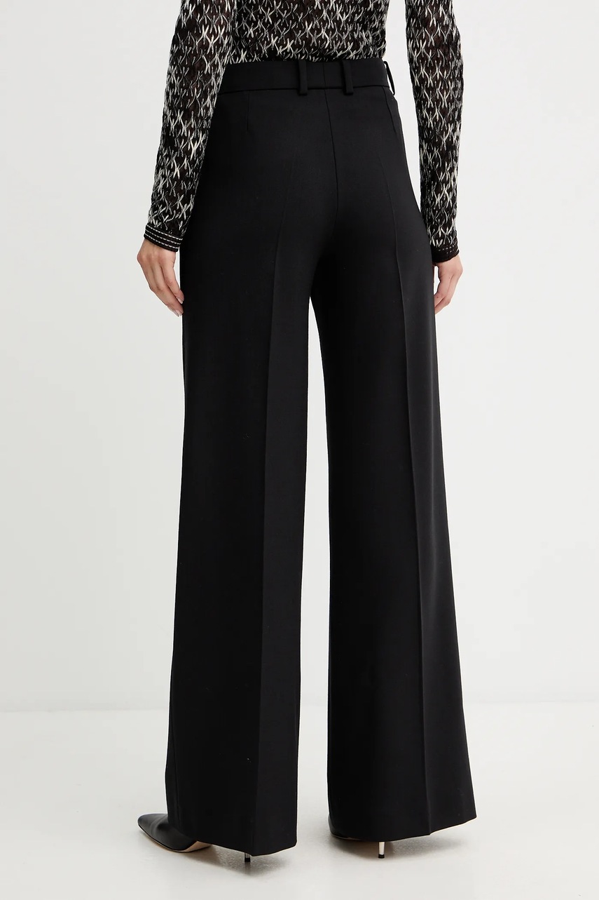 Luisa Spagnoli spodnie wełniane damskie kolor czarny szerokie high waist 542476