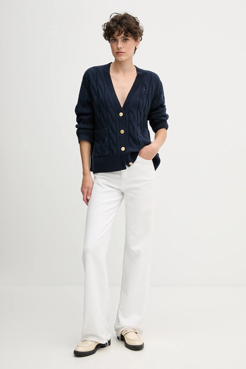 Tommy Hilfiger kardigan wełniany kolor granatowy WW0WW43089