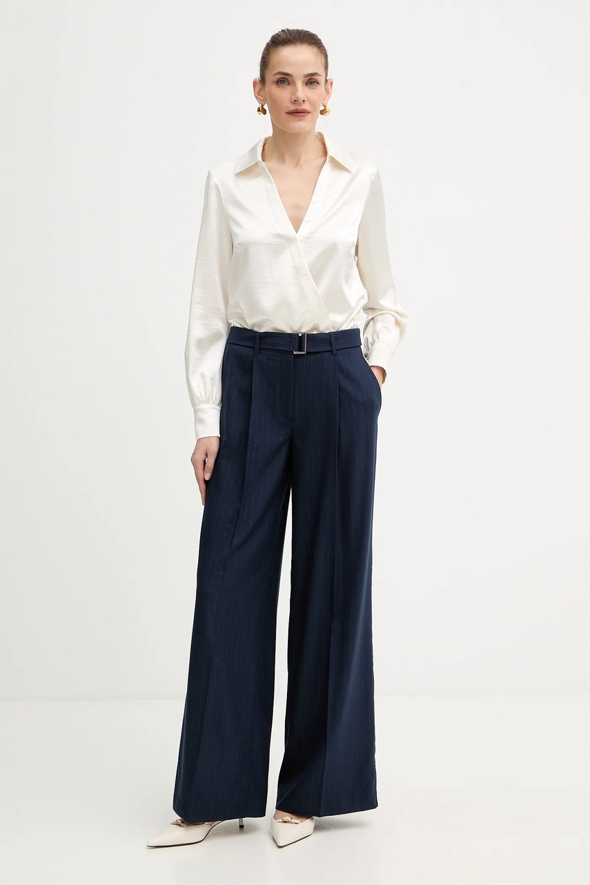 Guess spodnie ZANITA damskie kolor granatowy szerokie high waist W5BB13 W2422