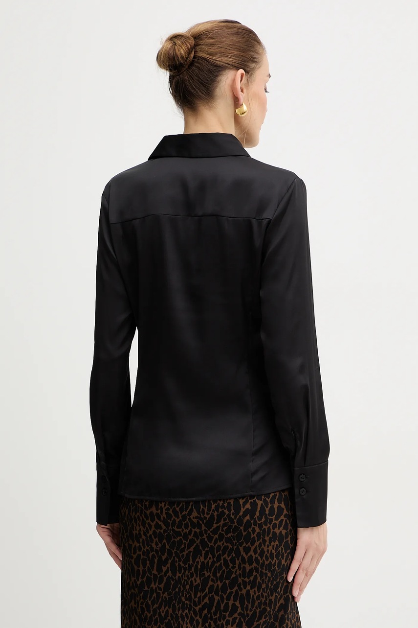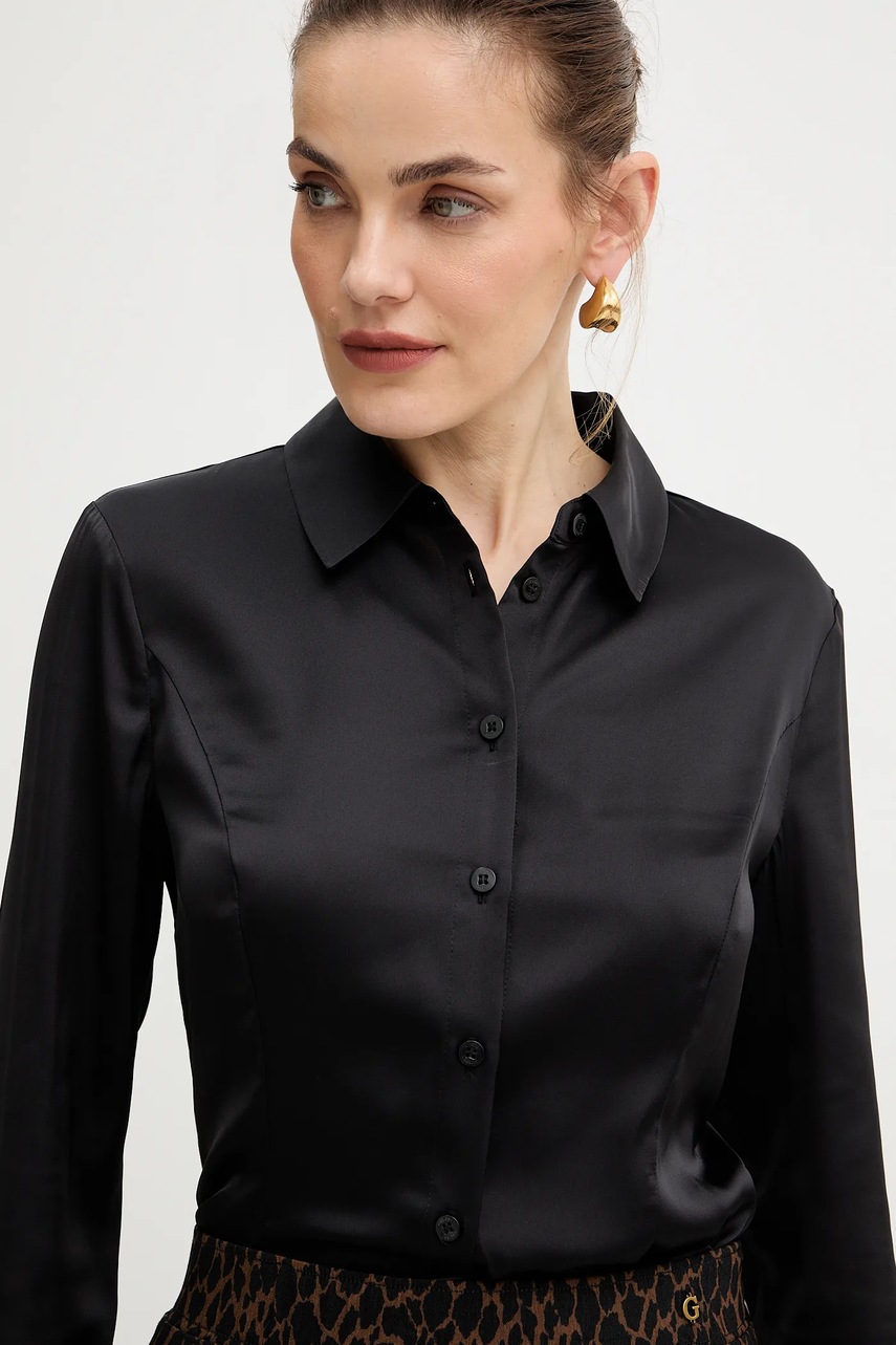 Guess koszula FERNANDA damska kolor czarny regular z kołnierzykiem klasycznym W5BH83 WF1T2