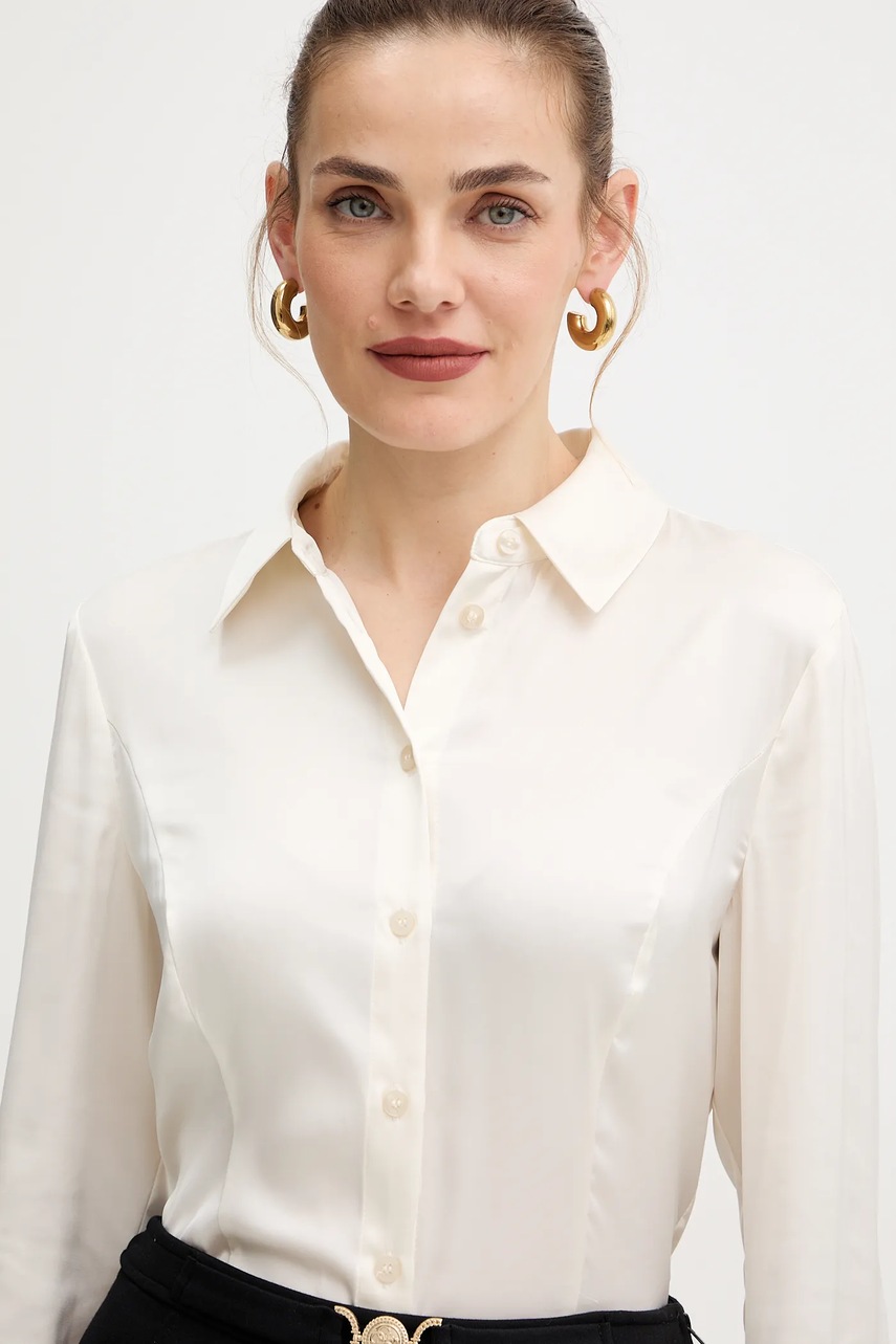 Guess koszula FERNANDA damska kolor beżowy regular z kołnierzykiem klasycznym W5BH83 WF1T2