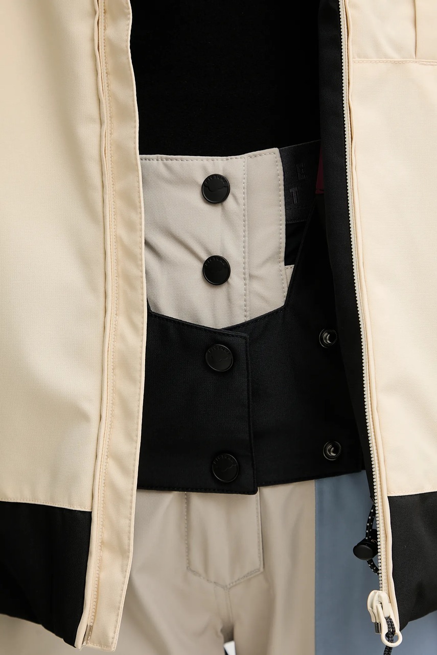 - Wewnątrz wbudowany pas śniegowy, który zapewnia dodatkową ochronę przed zimnem, a także zapobiega przedostaniu się śniegu pod kurtkę, również podczas upadku.