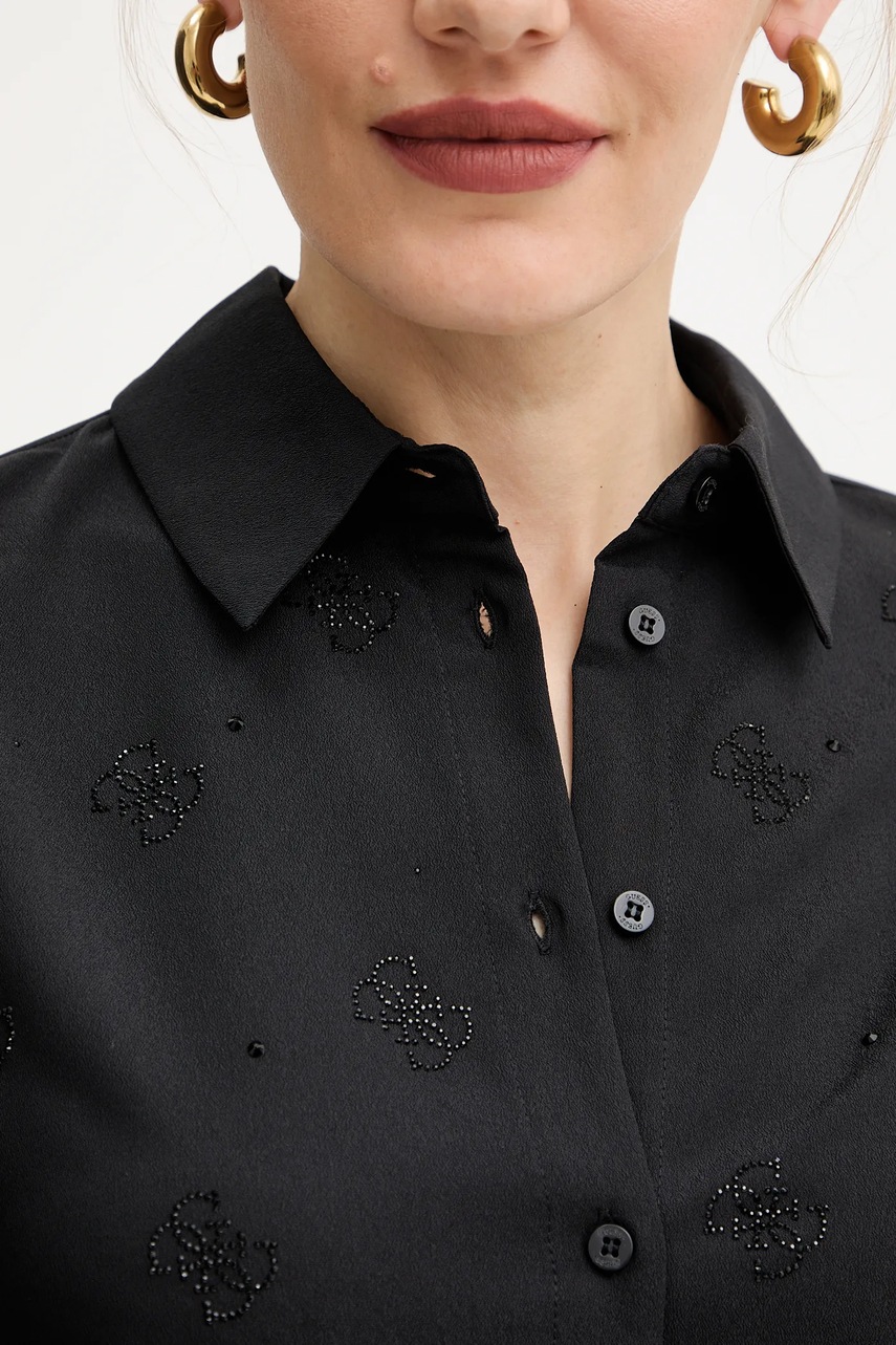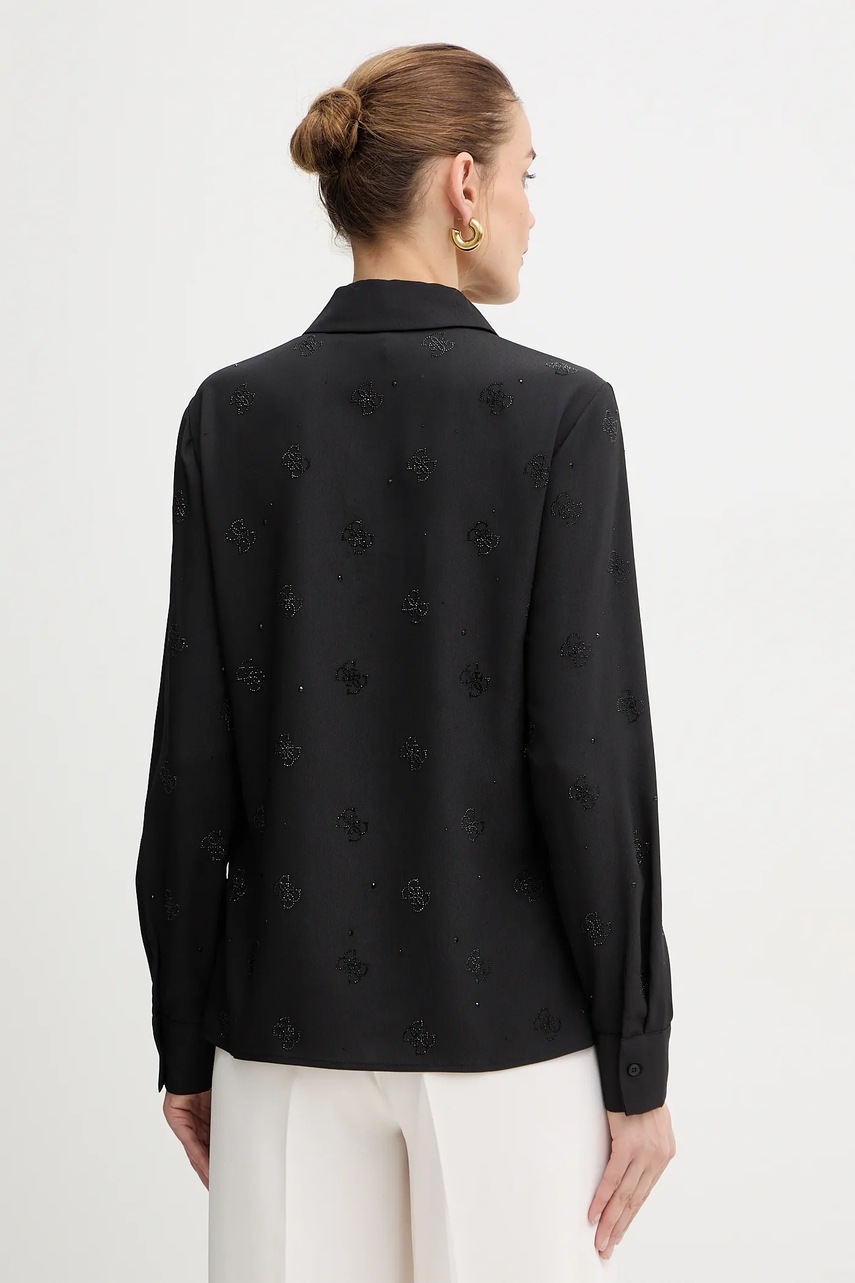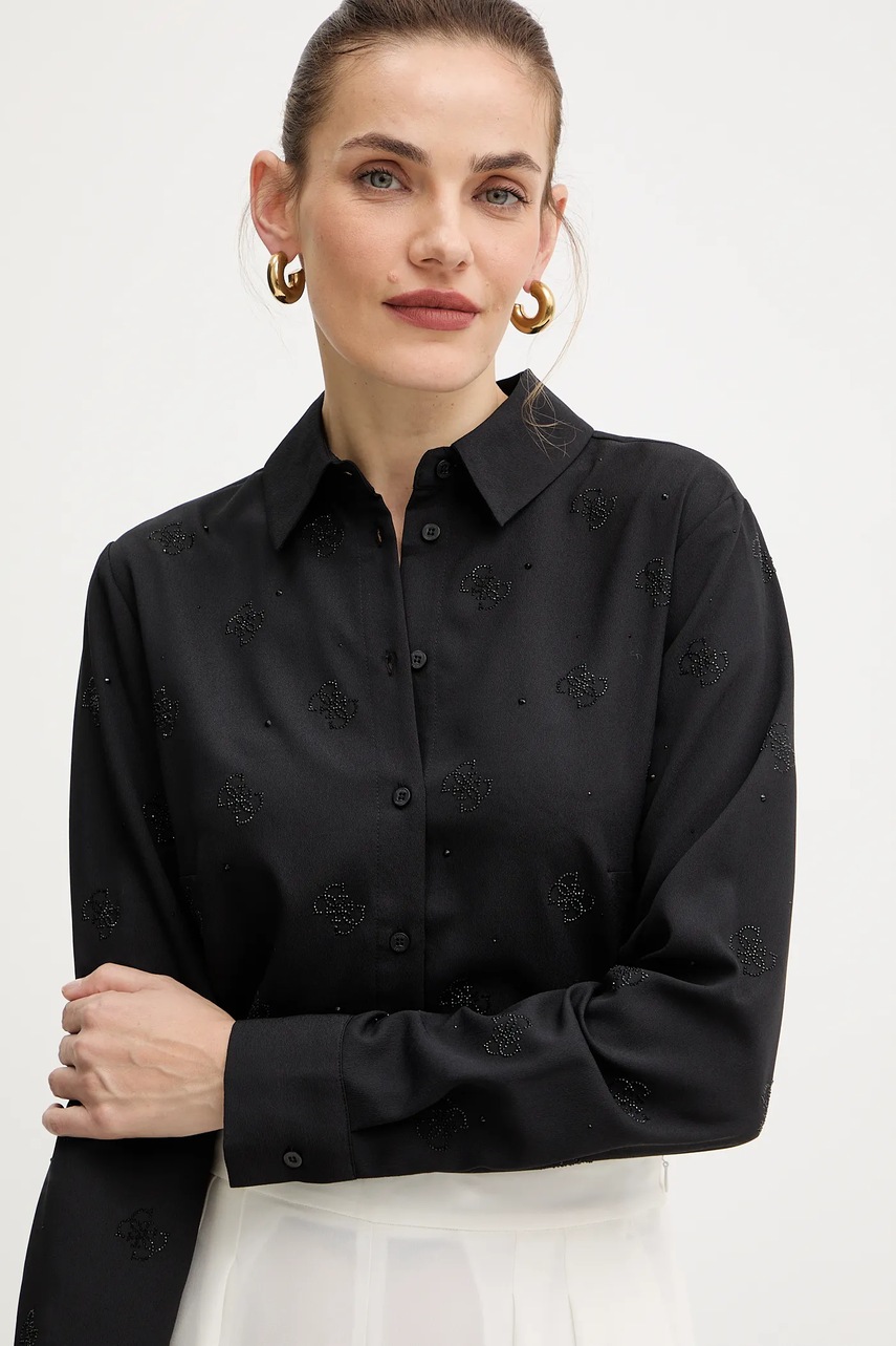 Guess koszula damska kolor czarny regular z kołnierzykiem klasycznym W5BH80 W2982