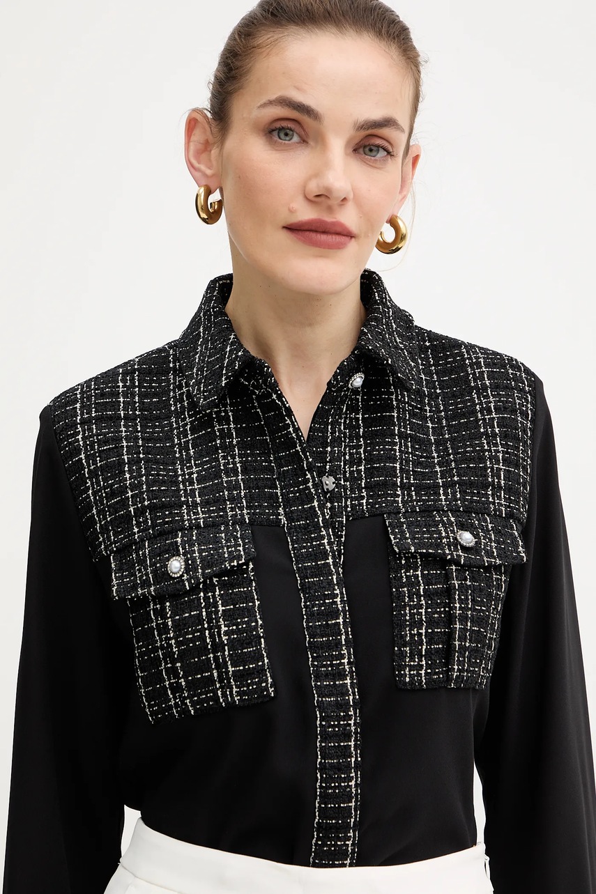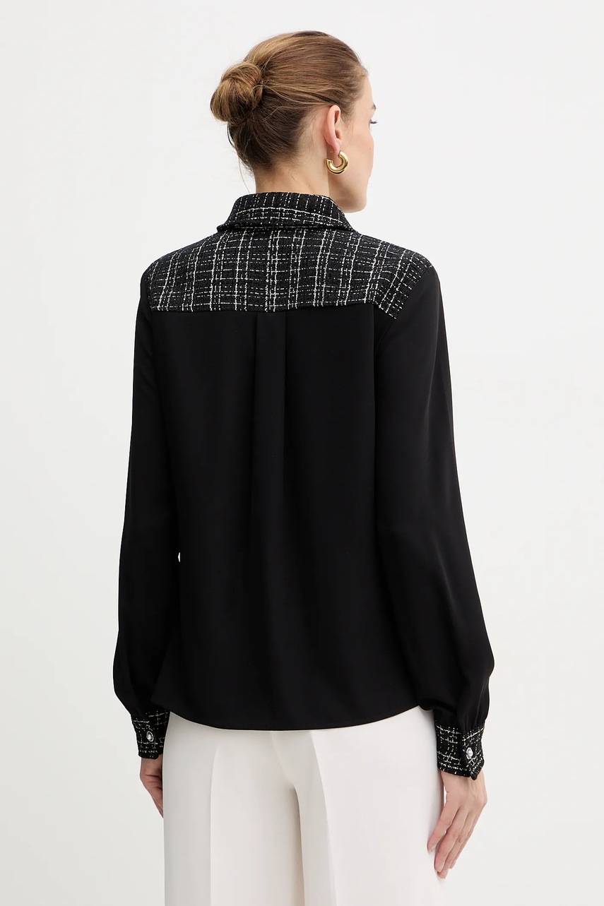 Guess koszula SANDRA damska kolor czarny regular z kołnierzykiem klasycznym W5BH55 W2382