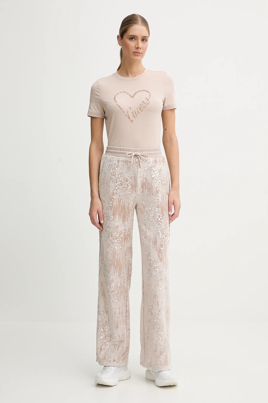 Guess spodnie dresowe welurowe damskie kolor beżowy z aplikacją V5BB01 K1922