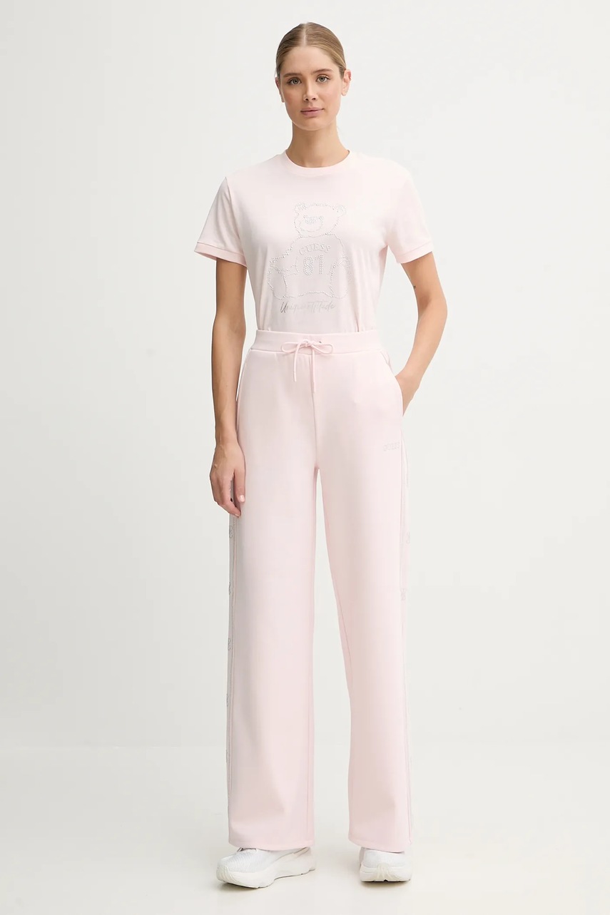 Guess spodnie dresowe OCTAVIA damskie kolor różowy z aplikacją V5BB12 KCX22