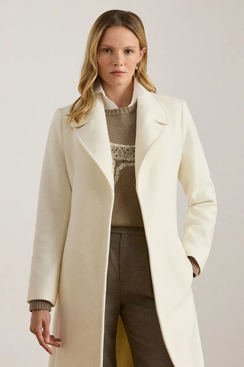 Lauren Ralph Lauren płaszcz wełniany kolor beżowy przejściowy 297962169