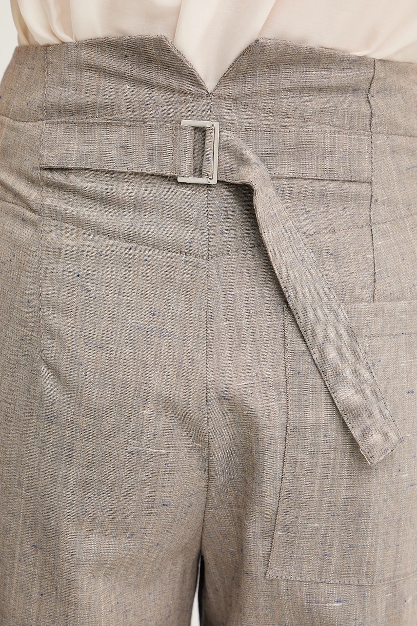 - Model z podwyższoną talią i zapięciem na suwak, guzik i haftki.