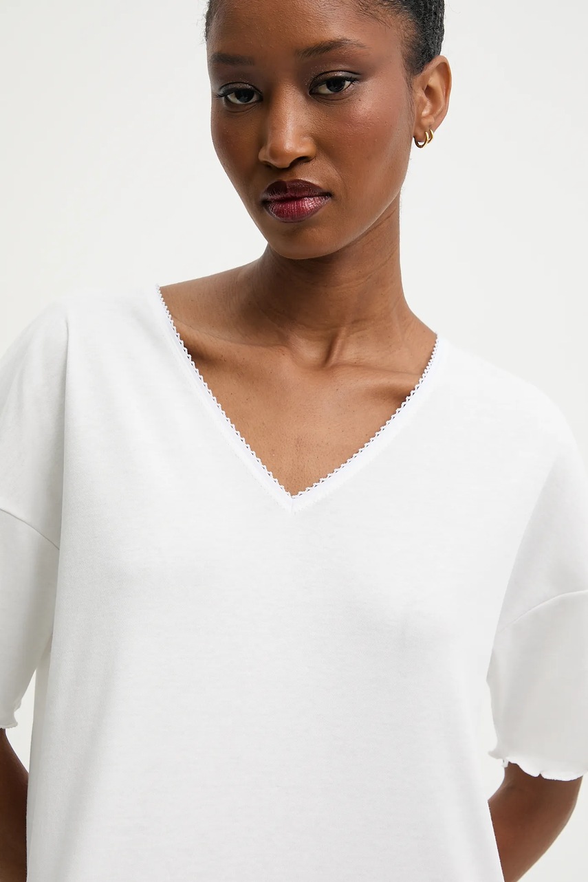 - Krój rękawa z obniżoną linią ramion nie ogranicza mobilności.