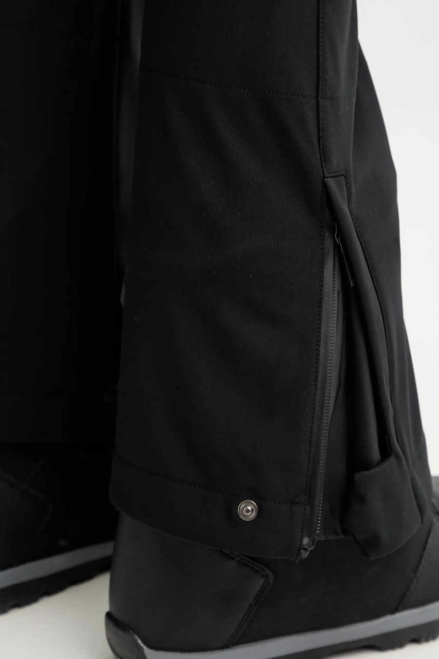 - Dolne krawędzie nogawek wykończone elastycznymi, podgumowanymi ściągaczami, co pozwala zapobiec przedostawaniu się do wnętrza zimna i śniegu.