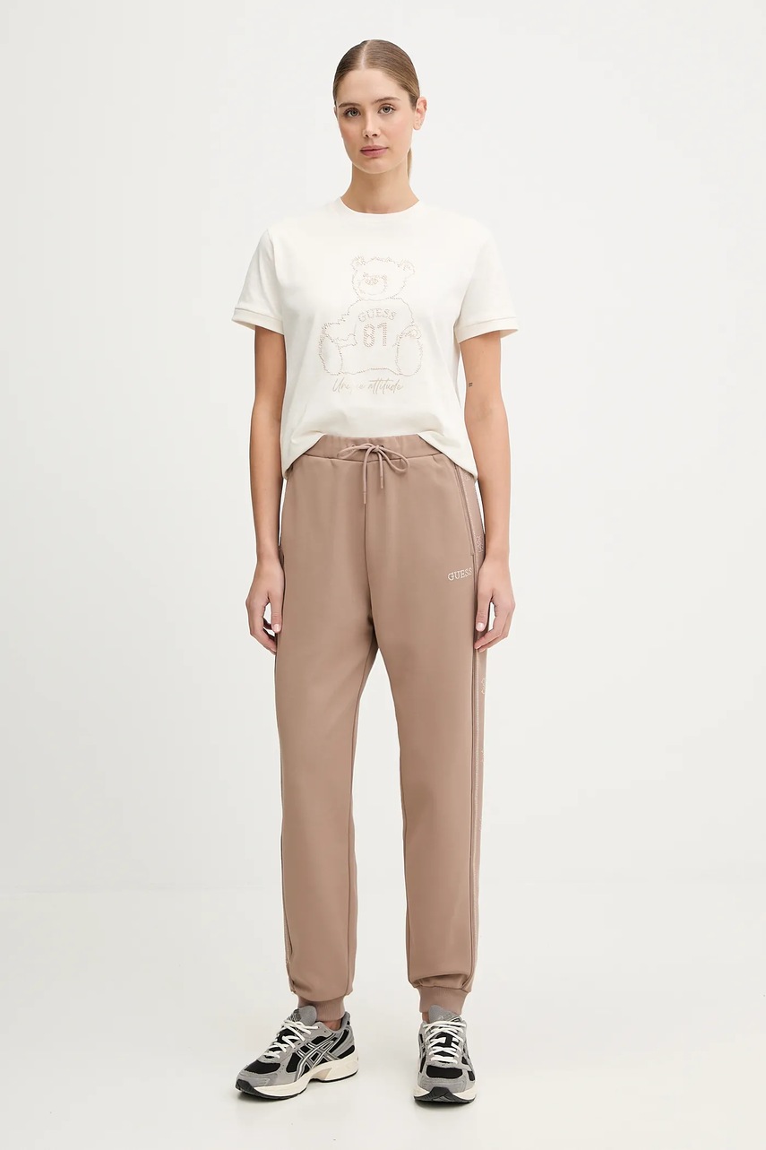 Guess spodnie dresowe OCTAVIA damskie kolor brązowy z aplikacją V5BB23 KCX22
