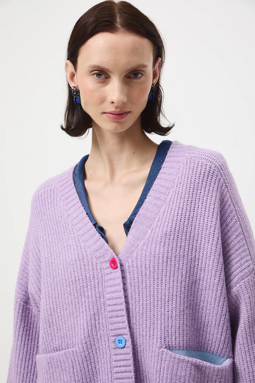 - Kardigan w fasonie oversize zapewnia komfort i swobodę ruchów. Pasuje do różnych stylów, podkreślając casualowy charakter stylizacji.