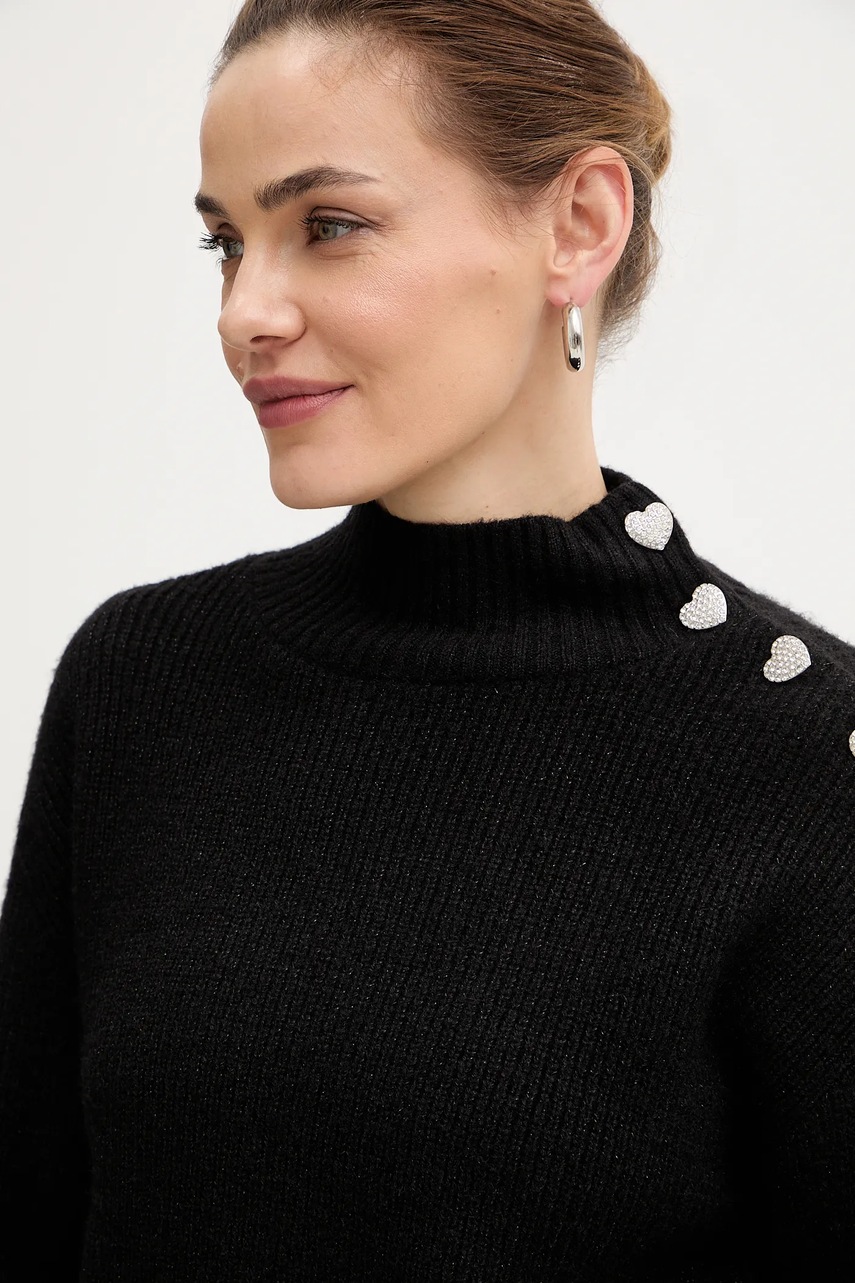 Morgan sweter z domieszką wełny MSTORI damski kolor czarny z półgolfem MSTORI