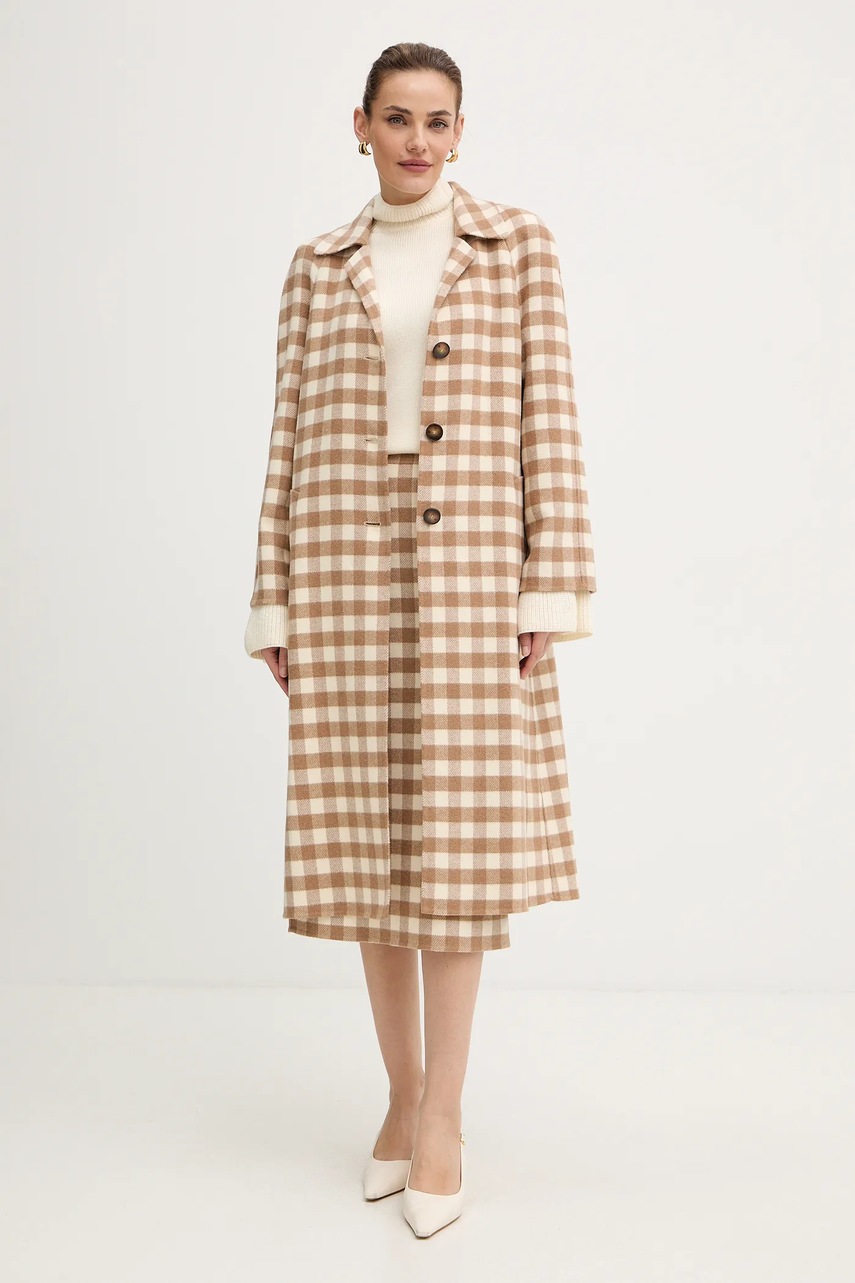 Luisa Spagnoli spódnica z dodatkiem wełny kolor beżowy midi ołówkowa 542658