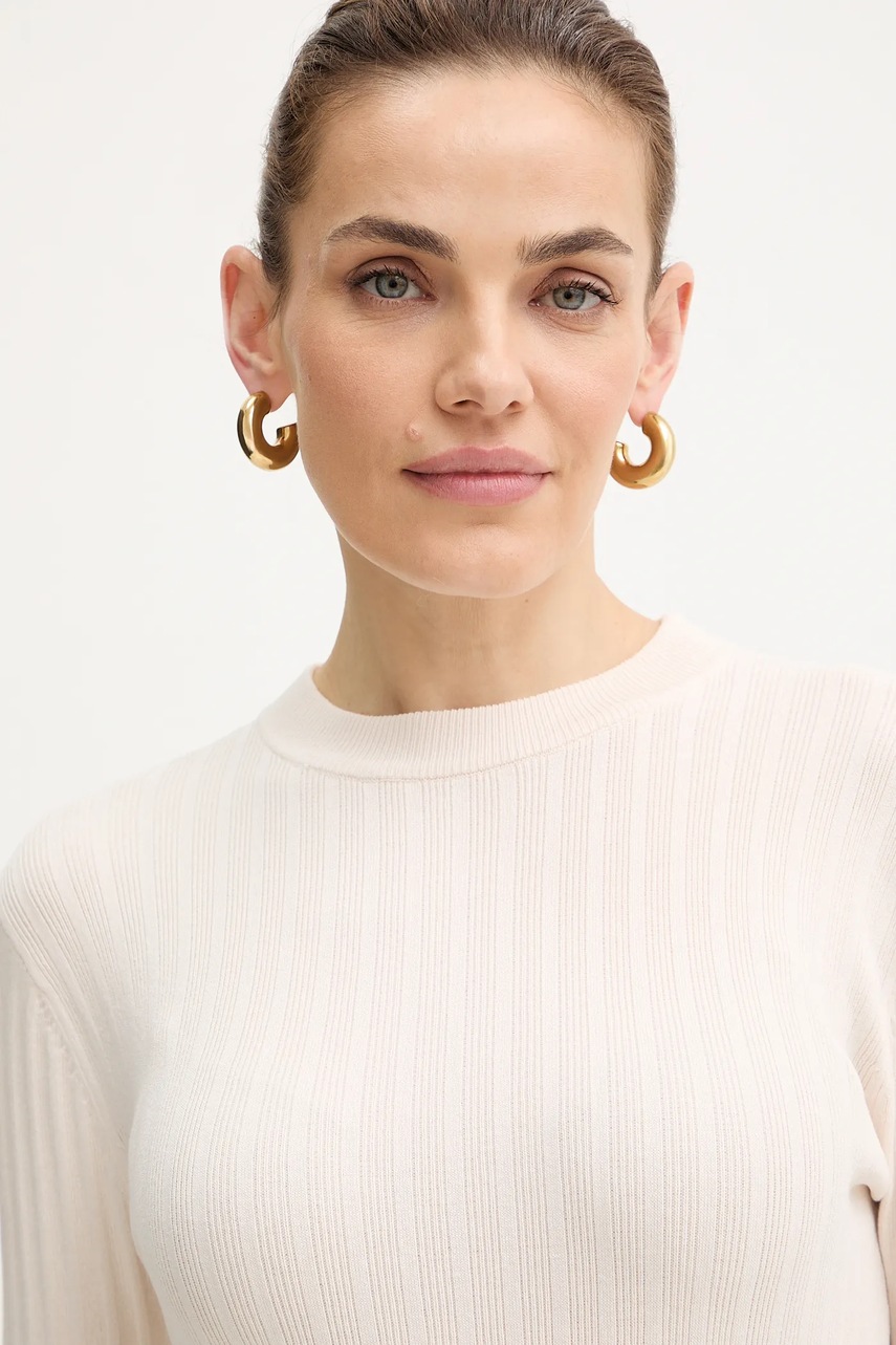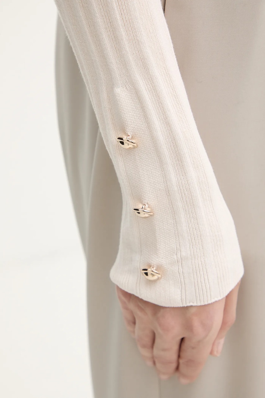 Morgan sweter damski kolor beżowy lekki z półgolfem MCIELO