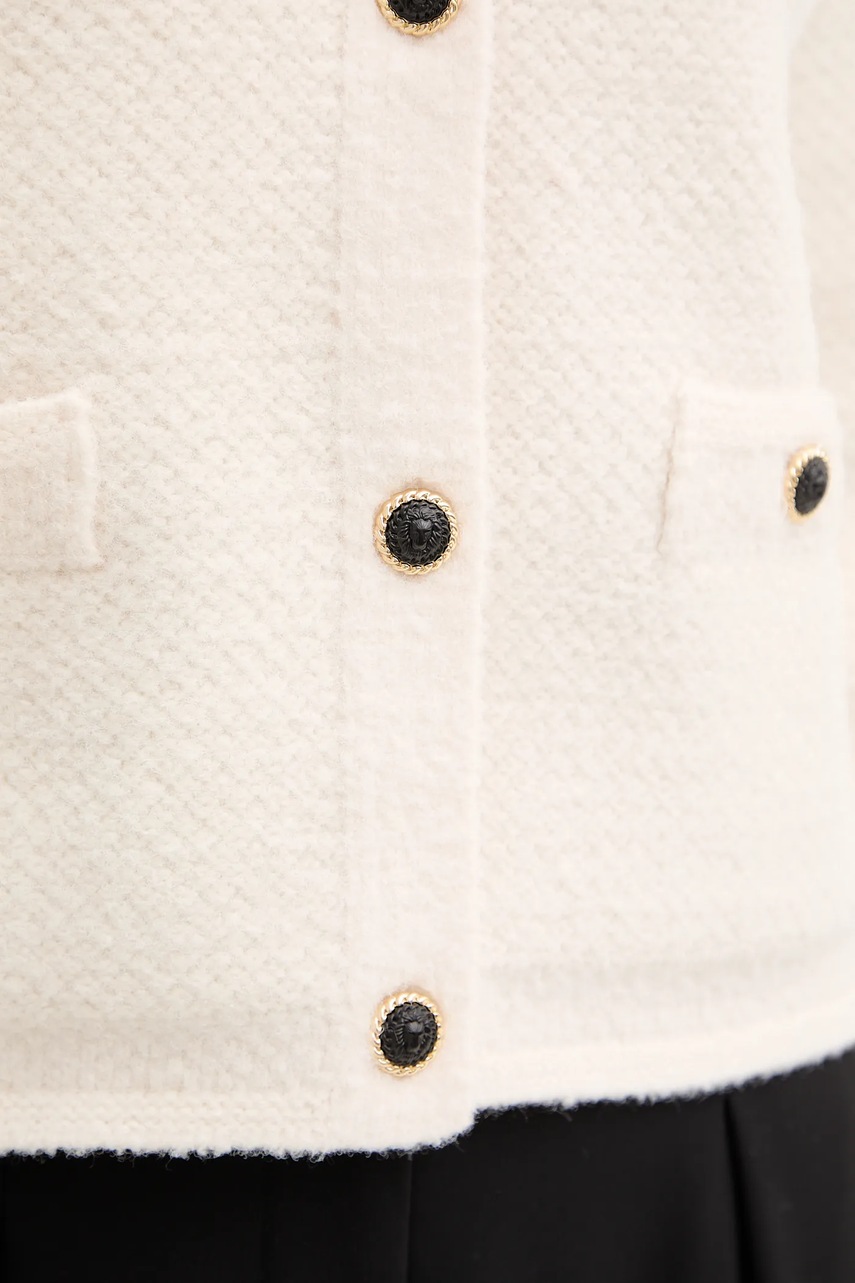 - Kardigan w fasonie regular zapewnia wygodę i uniwersalny wygląd. Delikatnie dopasowuje się do sylwetki, ale nie podkreśla jej nadmiernie. Klasyczny i prosty, sprawdzi się zarówno w eleganckich, jak i casualowych stylizacjach.