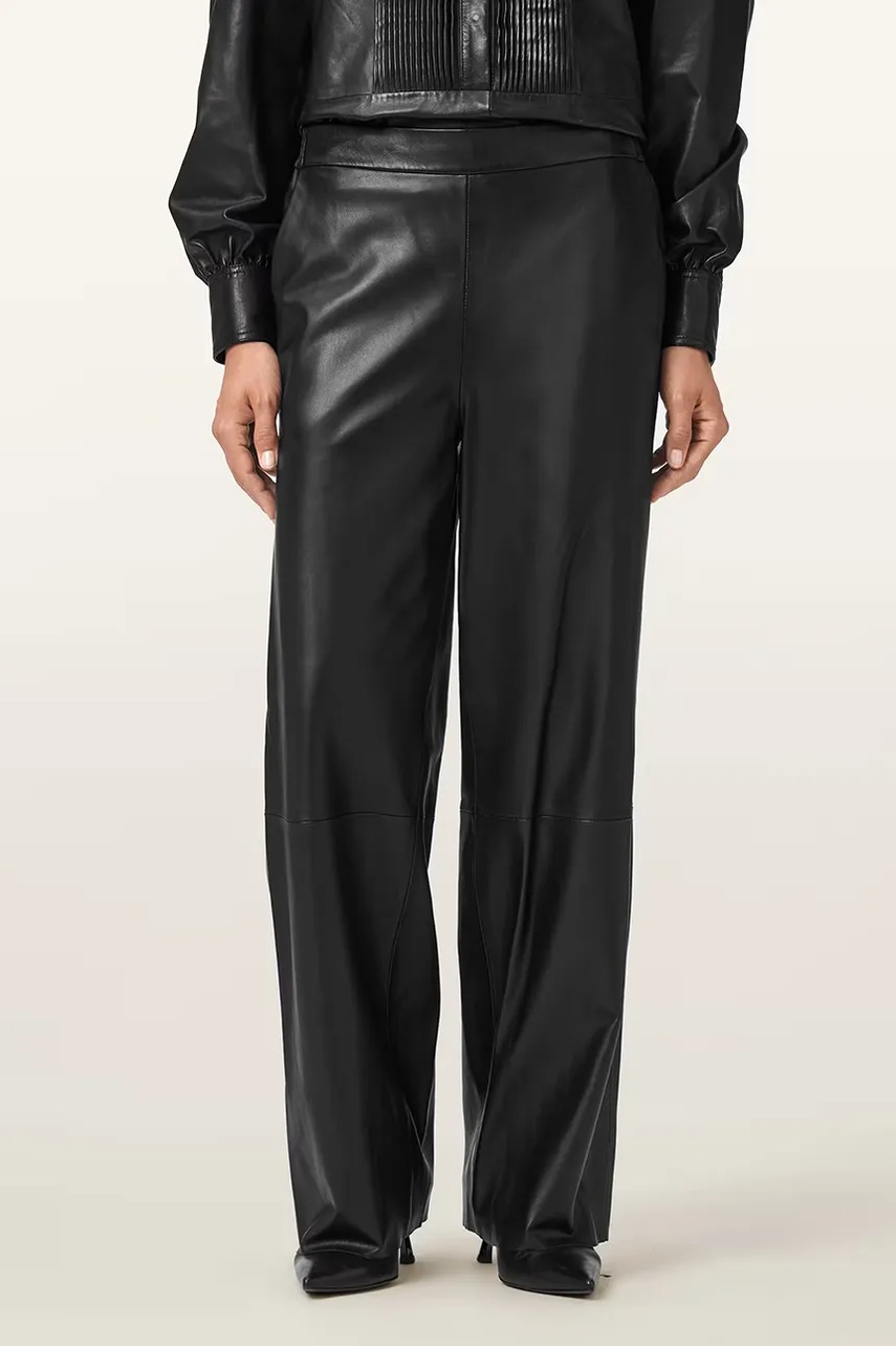 AllSaints spodnie skórzane ASH damskie kolor czarny szerokie high waist W028TD