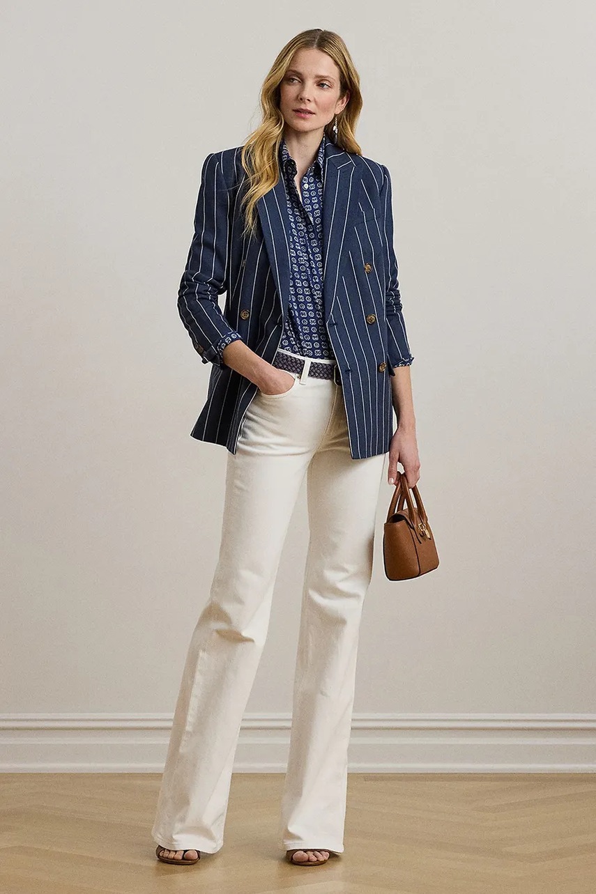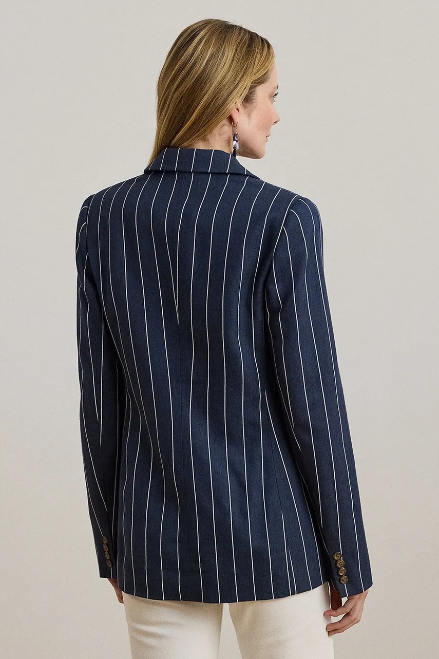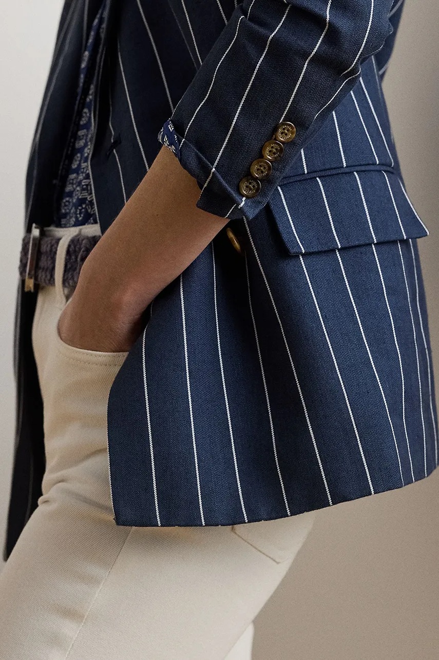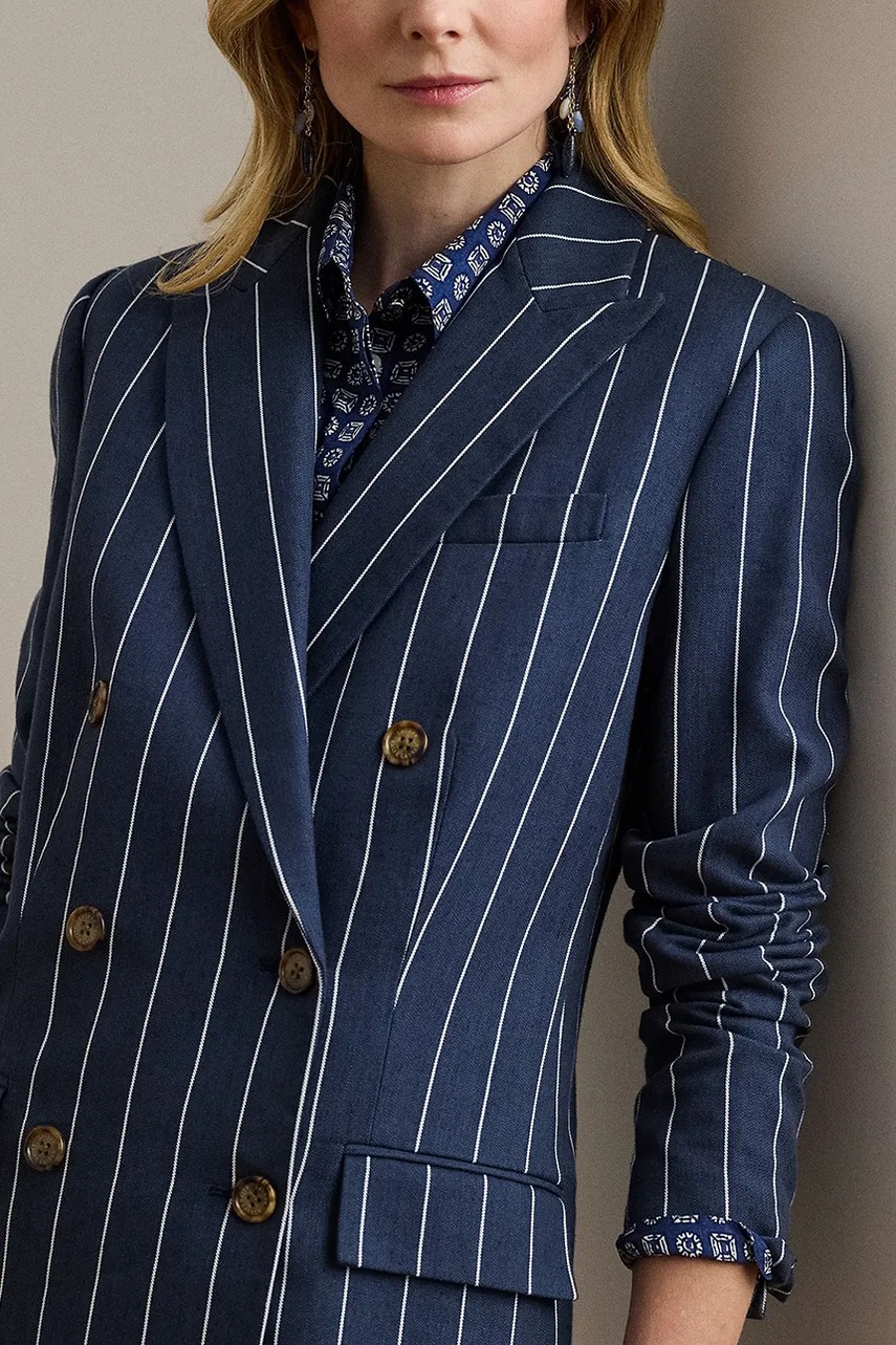 Lauren Ralph Lauren marynarka z domieszką lnu kolor granatowy dwurzędowa wzorzysta 200973085