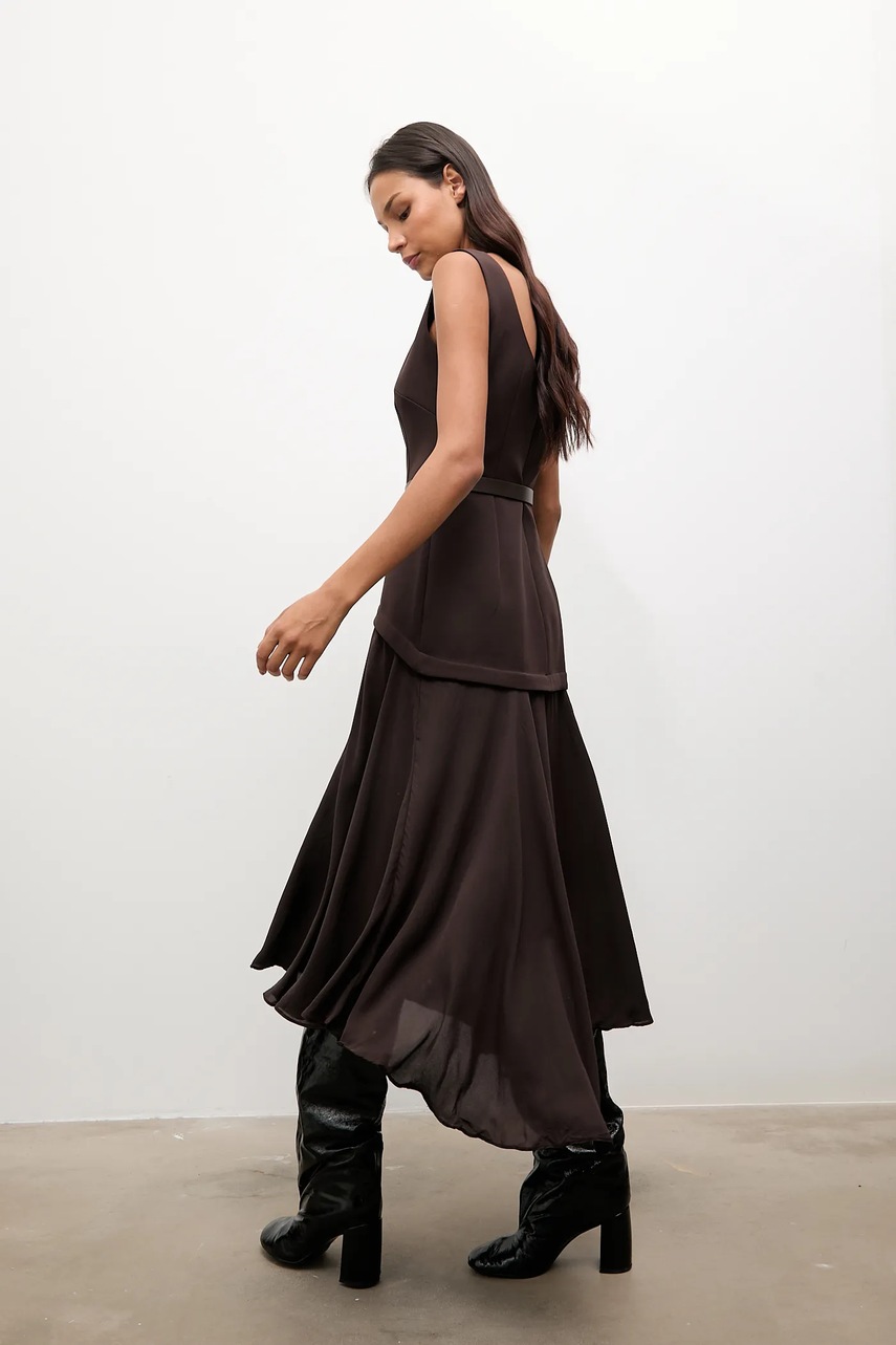 Answear.LAB sukienka kolor brązowy maxi rozkloszowana
