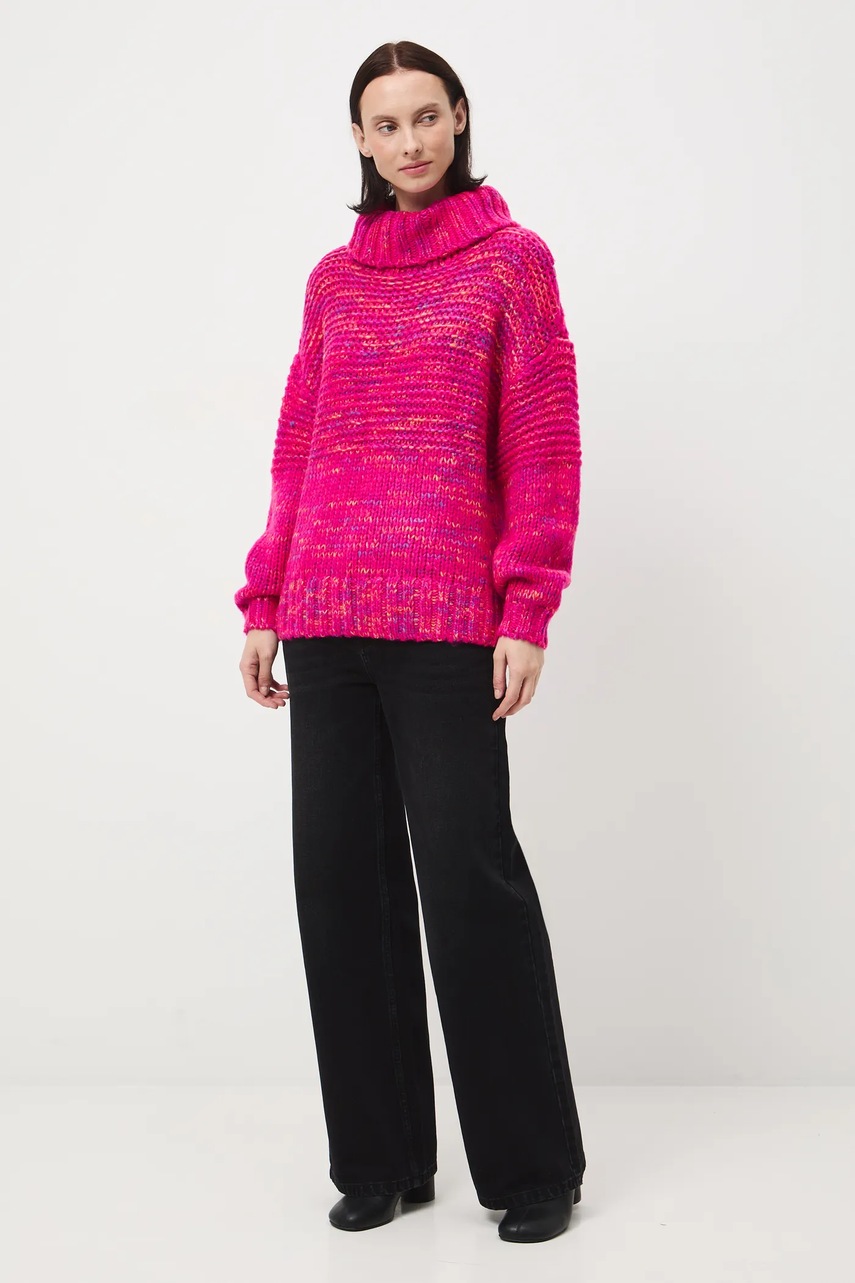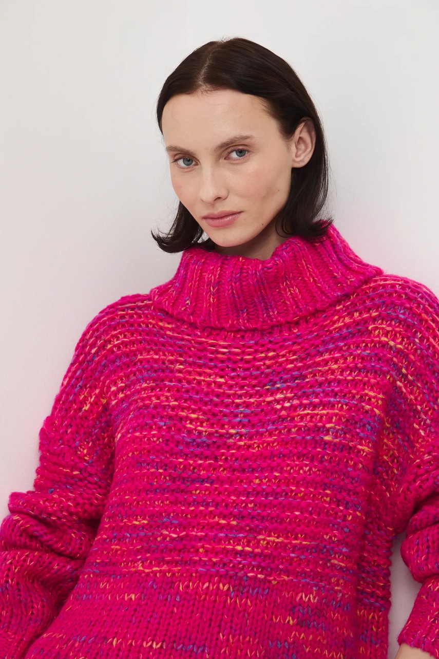 - Sweter w fasonie oversize zapewnia komfort i swobodę ruchów. Pasuje do różnych stylów, podkreślając casualowy charakter stylizacji.