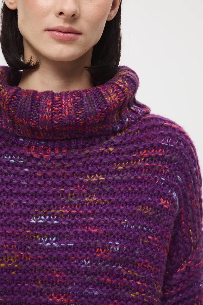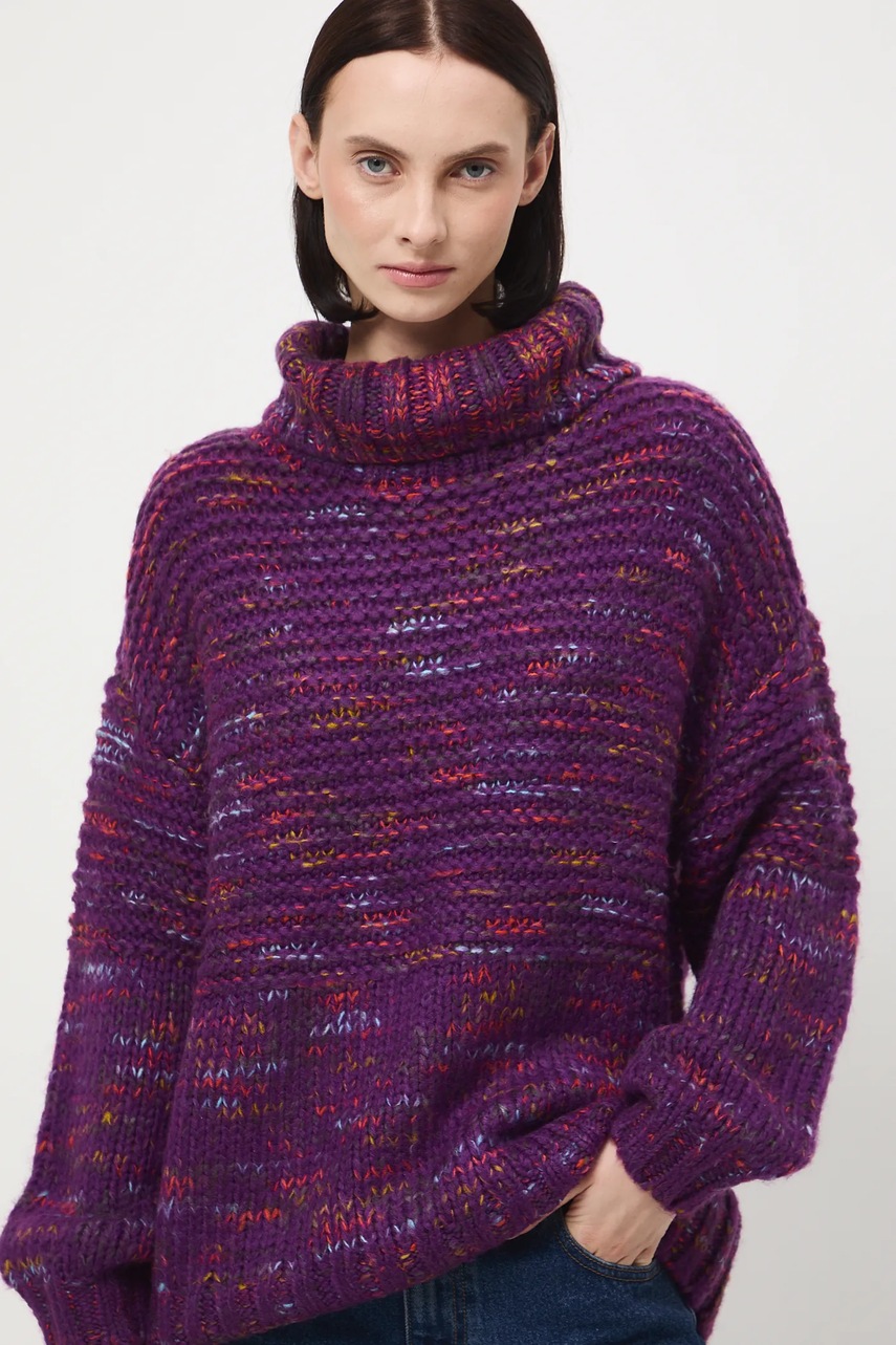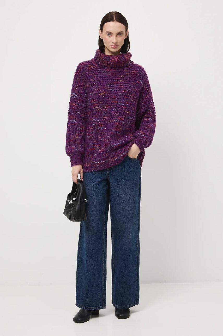 Medicine sweter damski kolor fioletowy ciepły z golfem